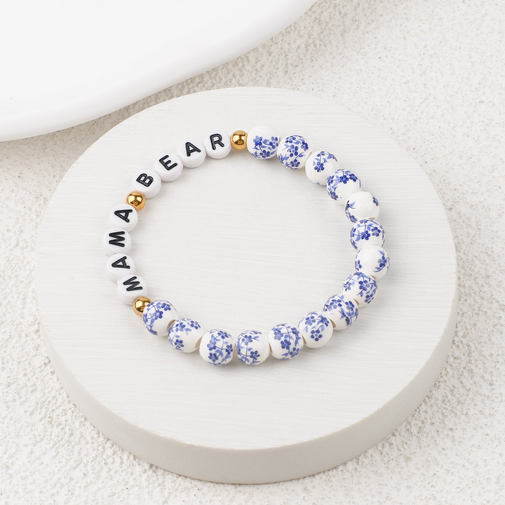 Blaues Porzellan-Armband mit Blumenperlen für Mama und Oma