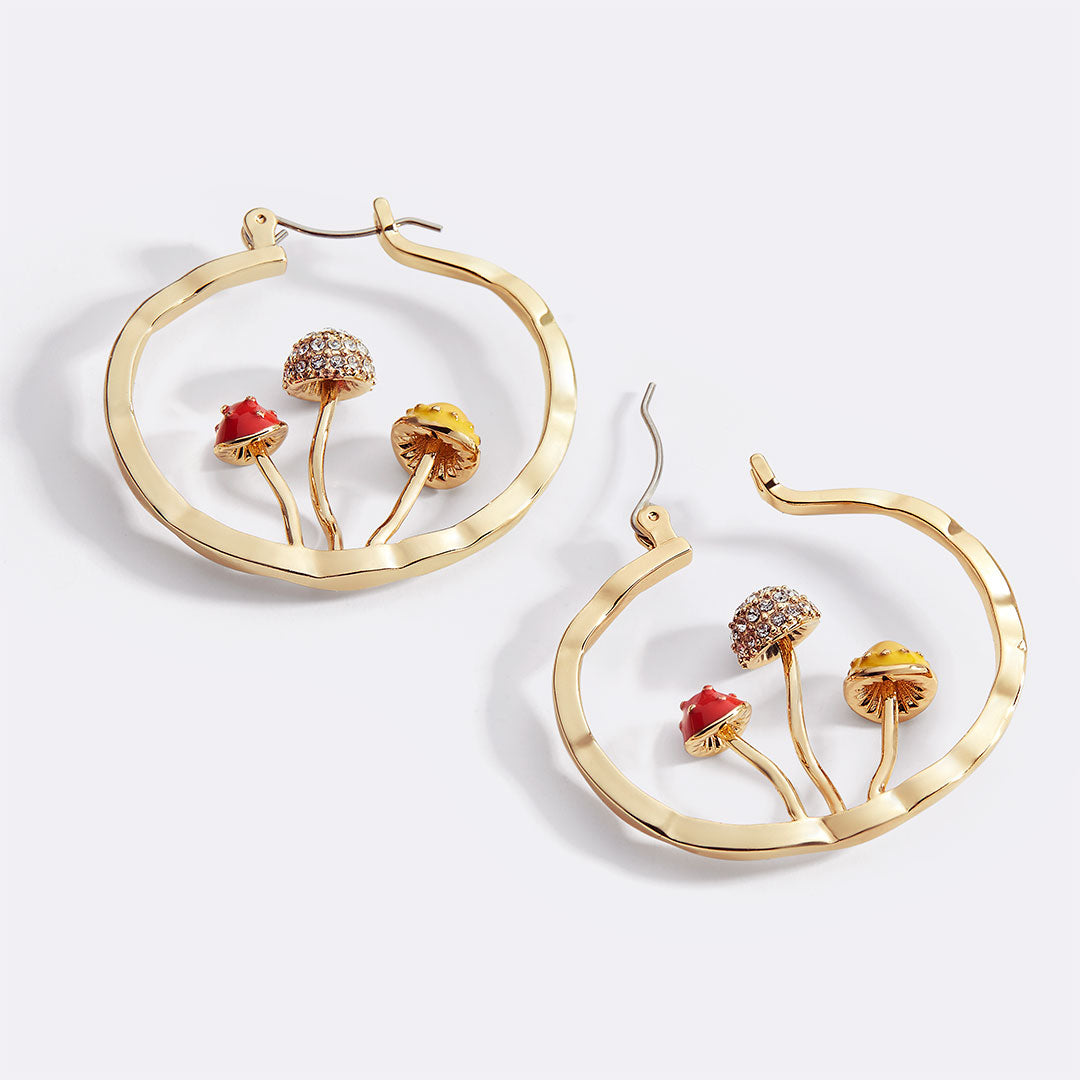 Diese Boho - Pilz - Ohrringe sind ein echter Hingucker . Erhältlich in Gold und Silber , bestechen diese Creolen mit ihrem einzigartigen Pilz - Design , das perfekt zu jedem Boho - Chic - Look passt . Die aufwendigen Details und die zarte Optik verleihen jedem Outfit einen Hauch von Charme . Ergänzen Sie Ihre Garderobe mit diesem Statement - Piece und bringen Sie frischen Wind in Ihren Look !