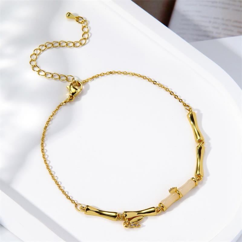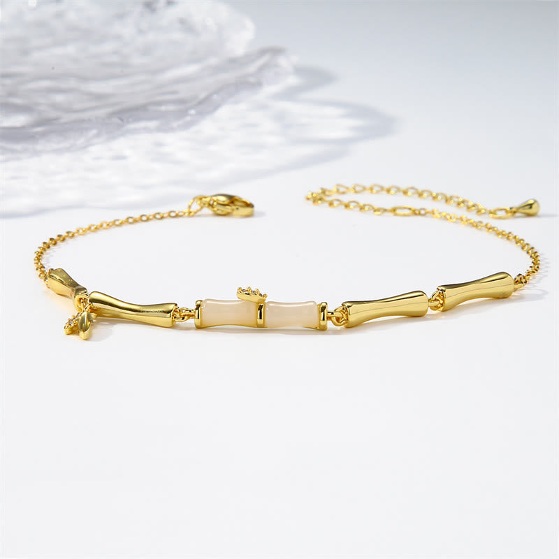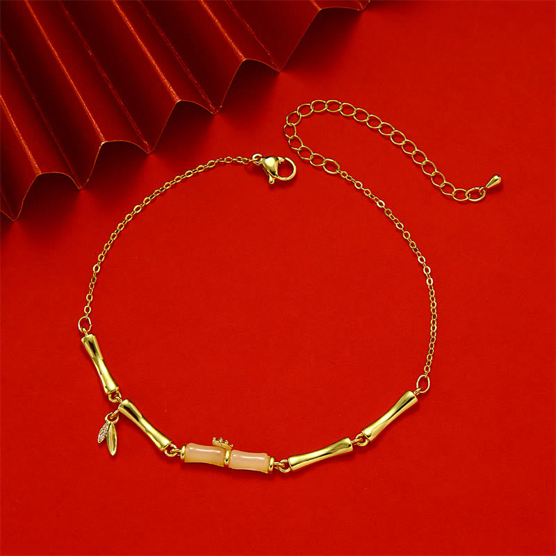 Buddha Stones Goldenes Bambusmuster Reichtum Kupfer Fußkettchen