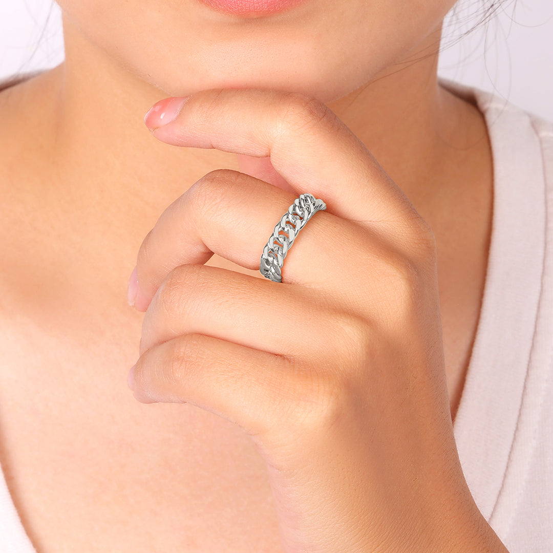 Mit seinem klassischen Panzerketten-Design schmiegt sich dieser Ring bequem an den Finger und verleiht traditionellem Schmuck eine moderne Note. Seine einzigartige Textur und Präsenz machen ihn zu einem Hingucker – perfekt für alle, die mit ihrem Stil ein Statement setzen möchten.