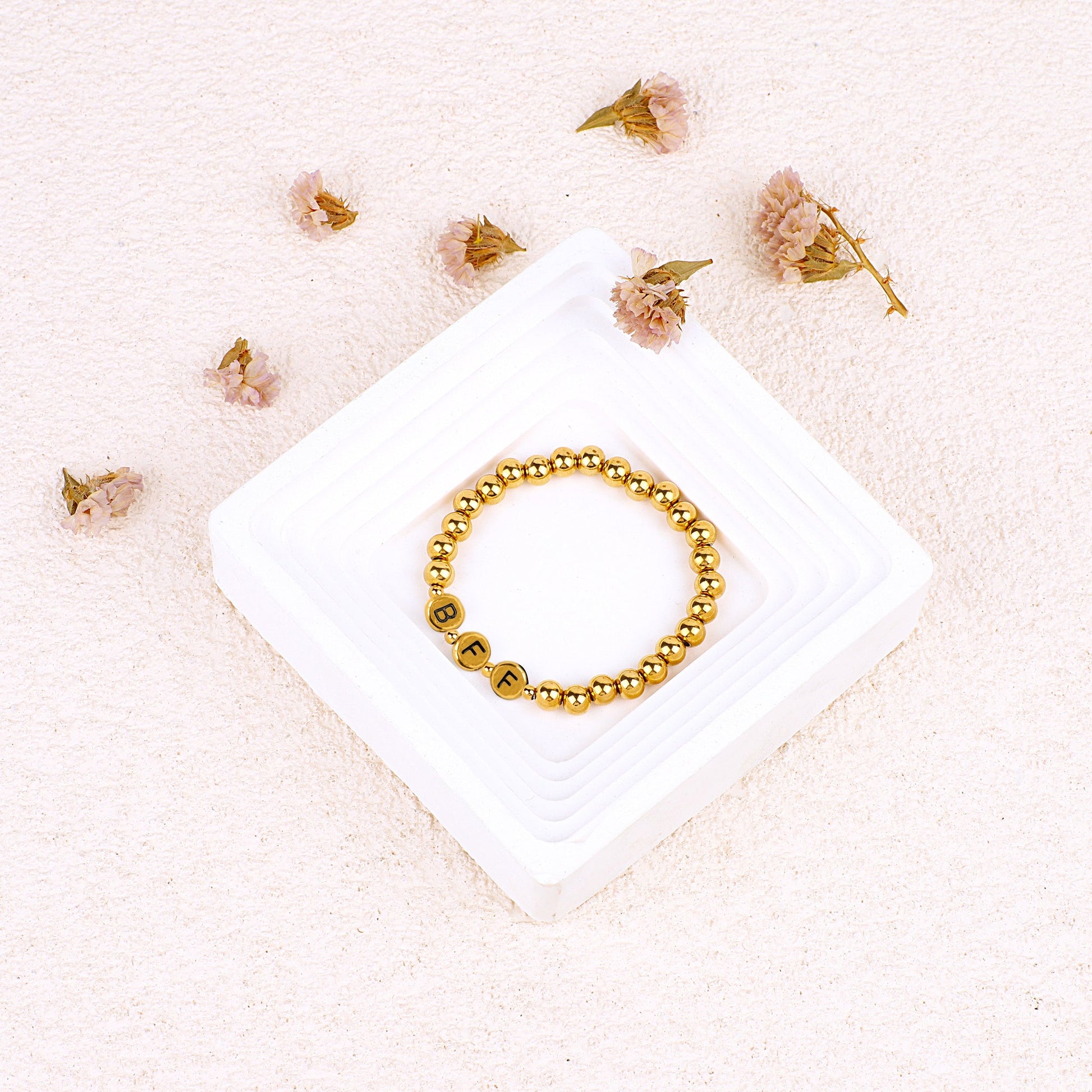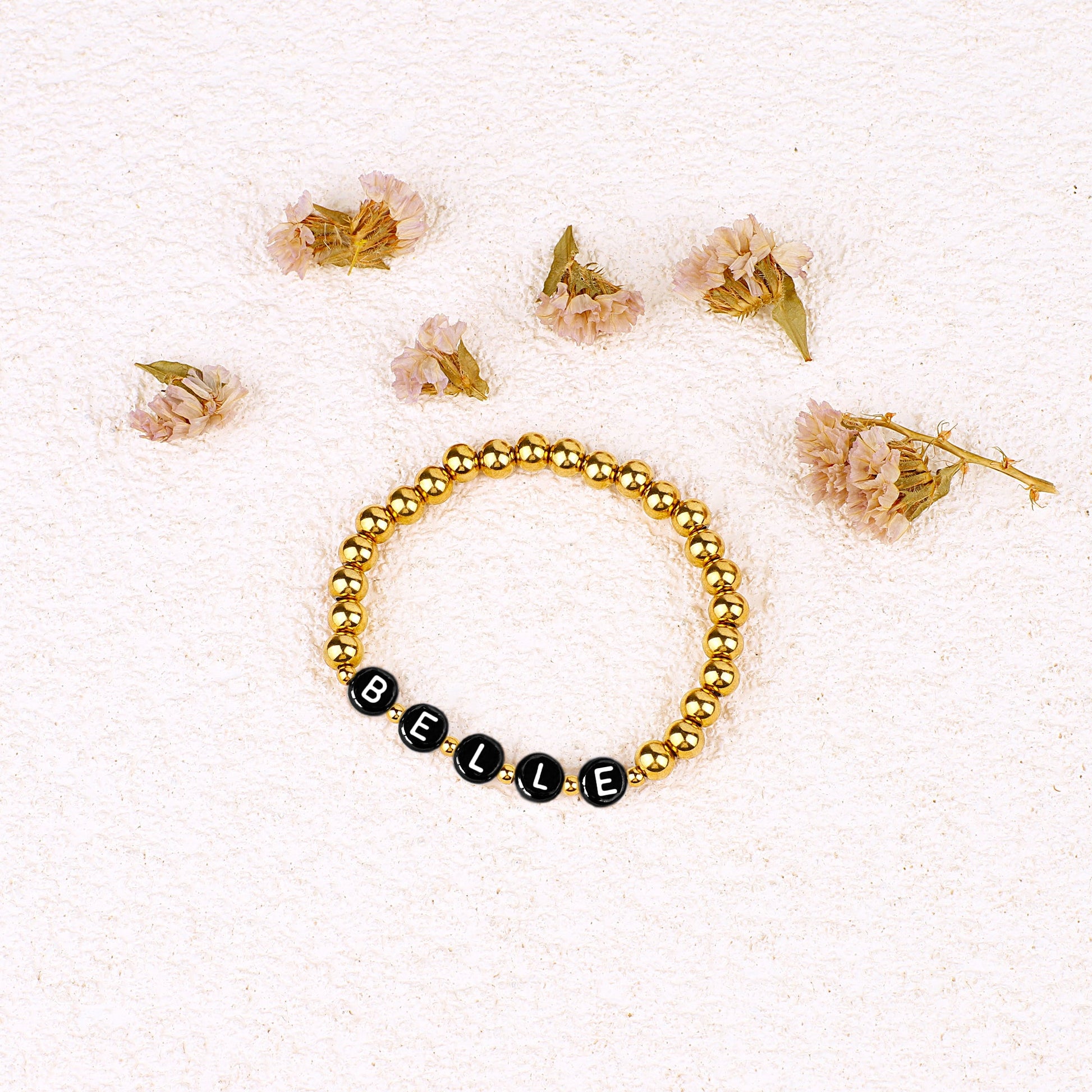 Personalisiertes Namensarmband mit goldenen Perlen