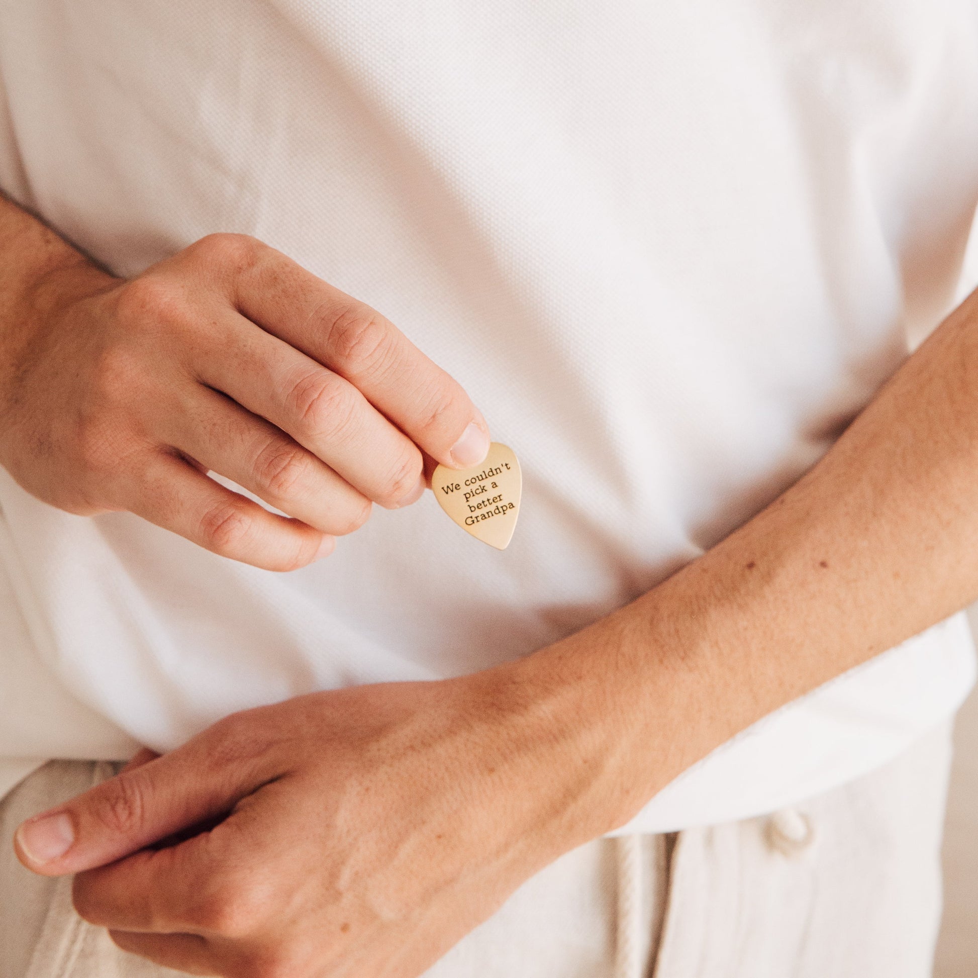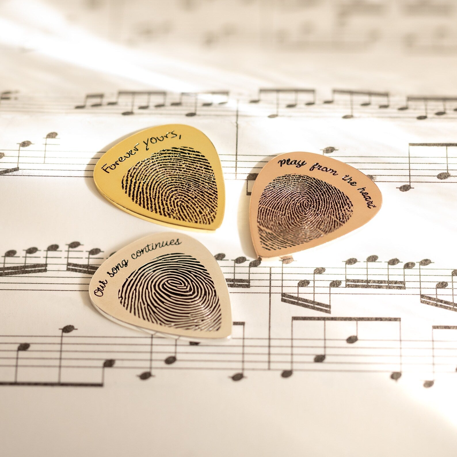 Verwandeln Sie Ihre Musikinstrumente mit diesem Plektrum in wertvolle Anhänger! Unser personalisiertes Plektrum wird zu einem wertvollen Andenken, indem Sie den Fingerabdruck und die Handschrift Ihrer Liebsten auf das Plektrum auftragen.