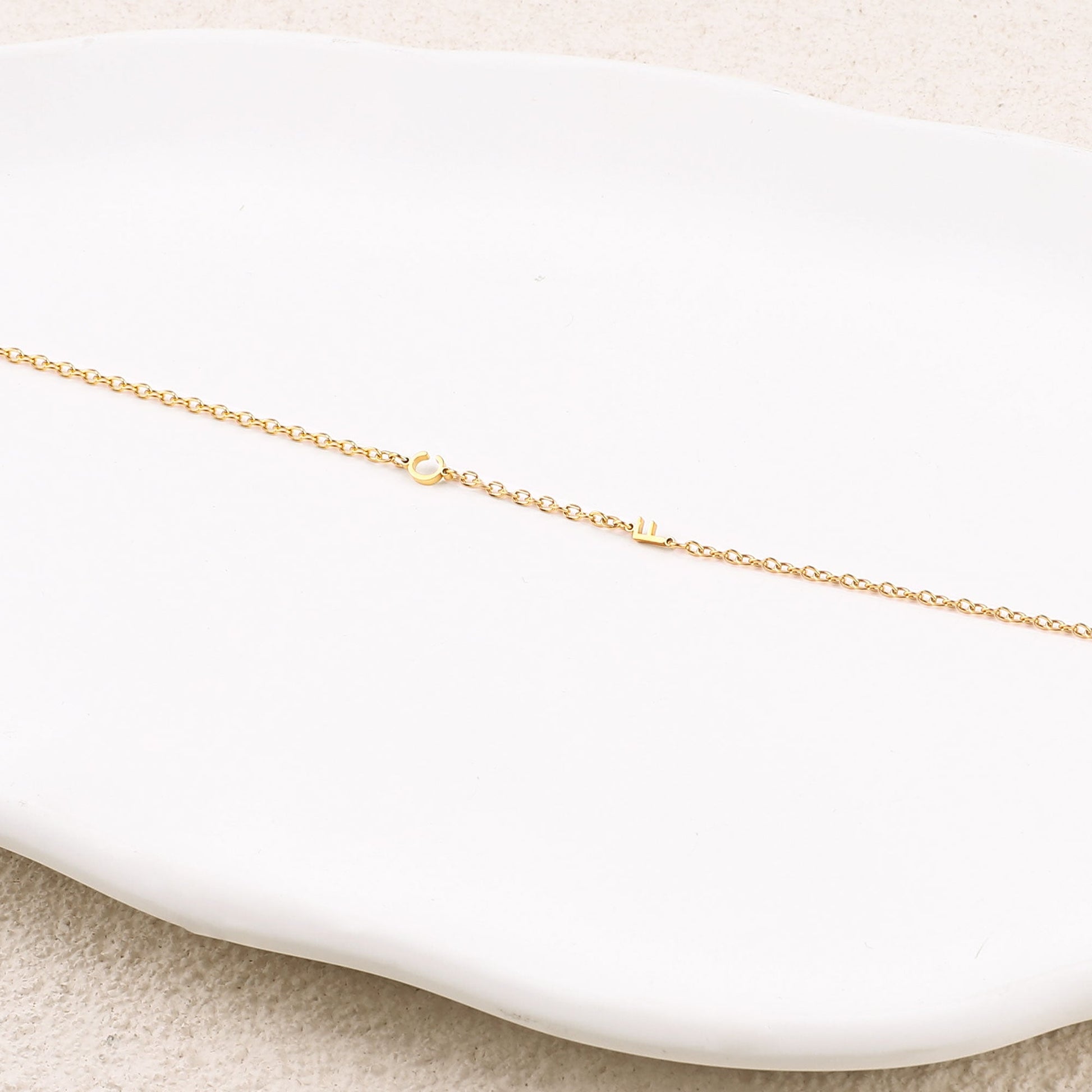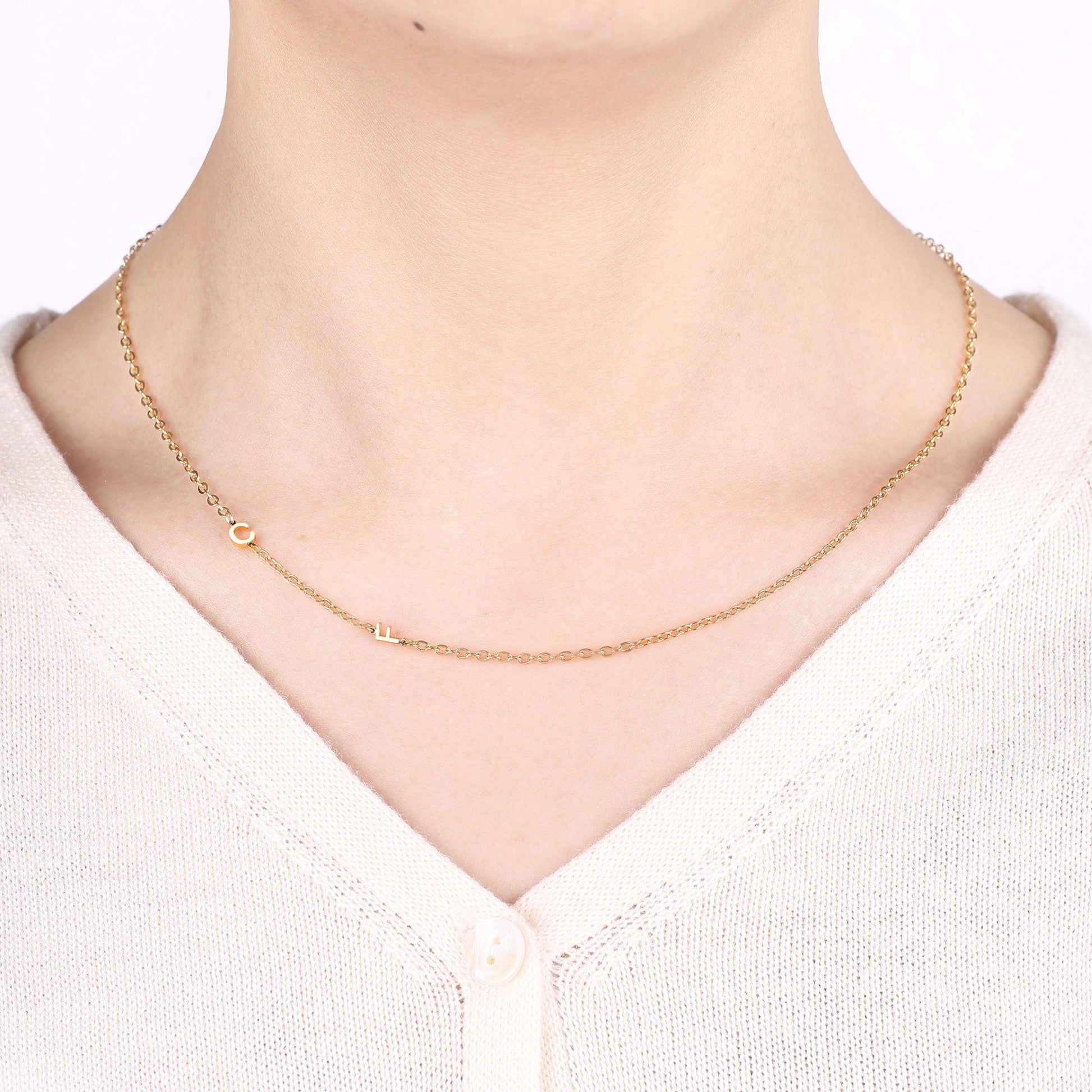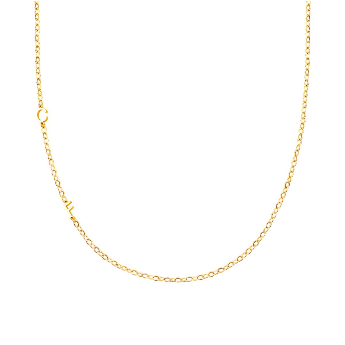Die Sideways Initials Halskette bietet eine moderne Interpretation personalisierten Schmucks. Mit horizontal angeordneten Initialen entlang einer schlanken Kette verbindet diese Halskette modernen Stil mit einem Hauch von Personalisierung. Sie eignet sich perfekt zum Kombinieren oder als Statement-Stück. Ob Sie Ihre eigenen Initialen oder die einer besonderen Person wählen, diese Halskette ist ein stilvolles und bedeutungsvolles Accessoire für jeden Anlass.