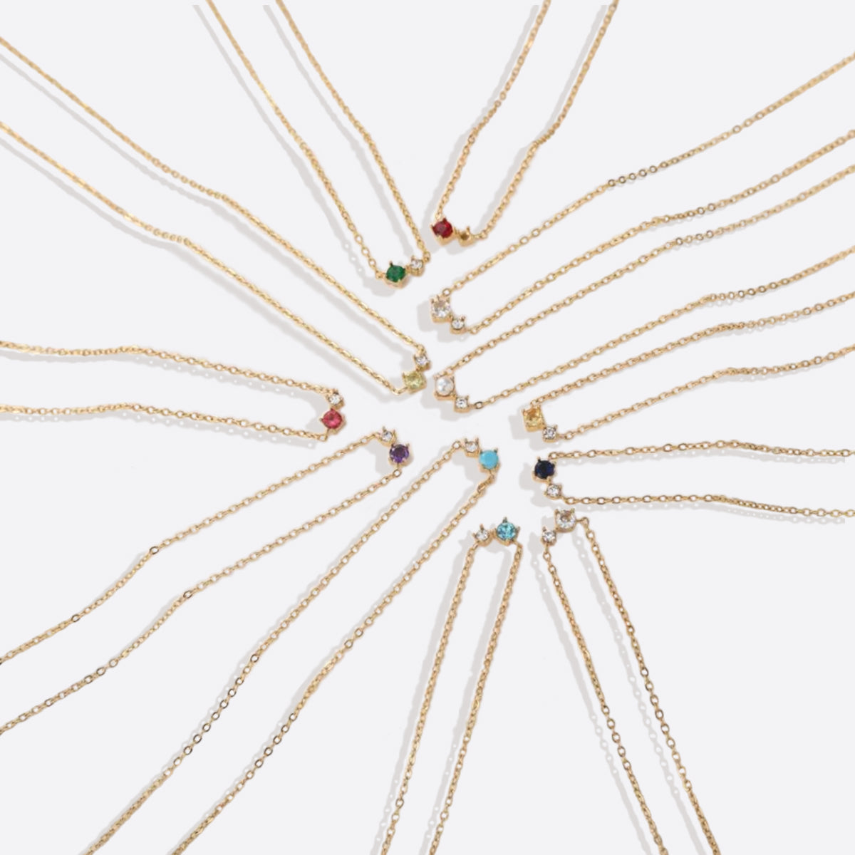 Zierliche Solitärkette mit Geburtssteinen und Diamantakzent