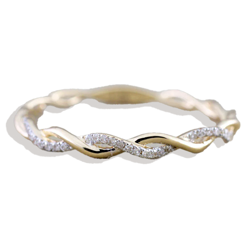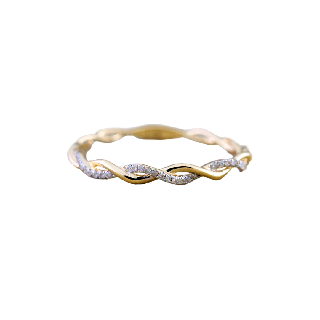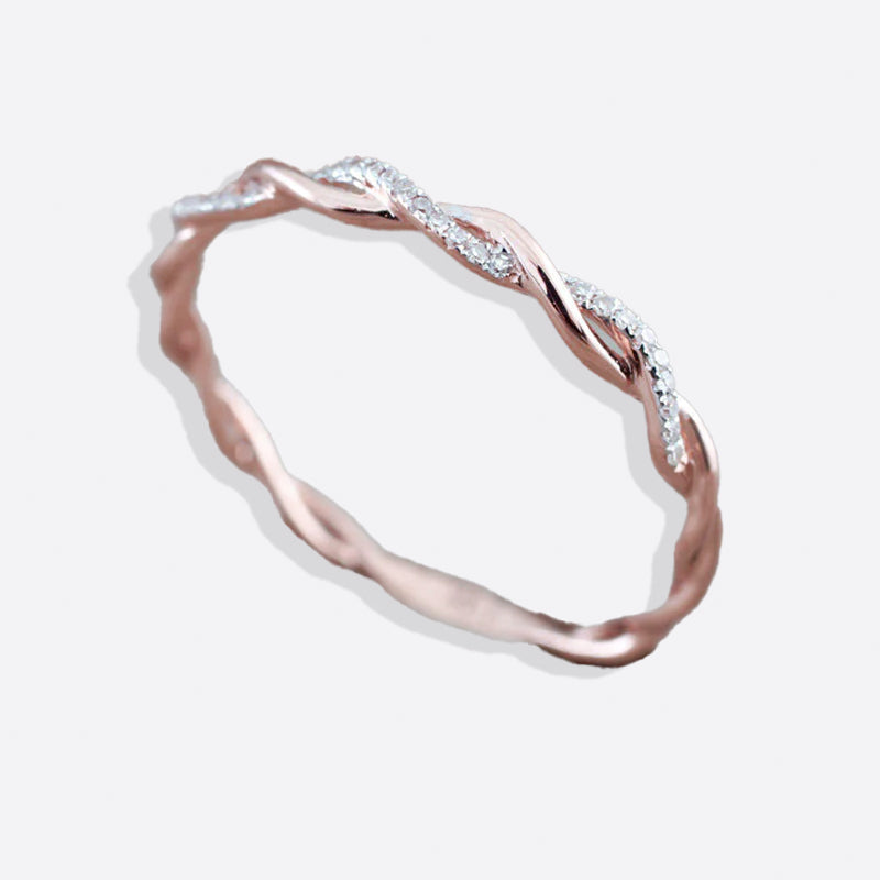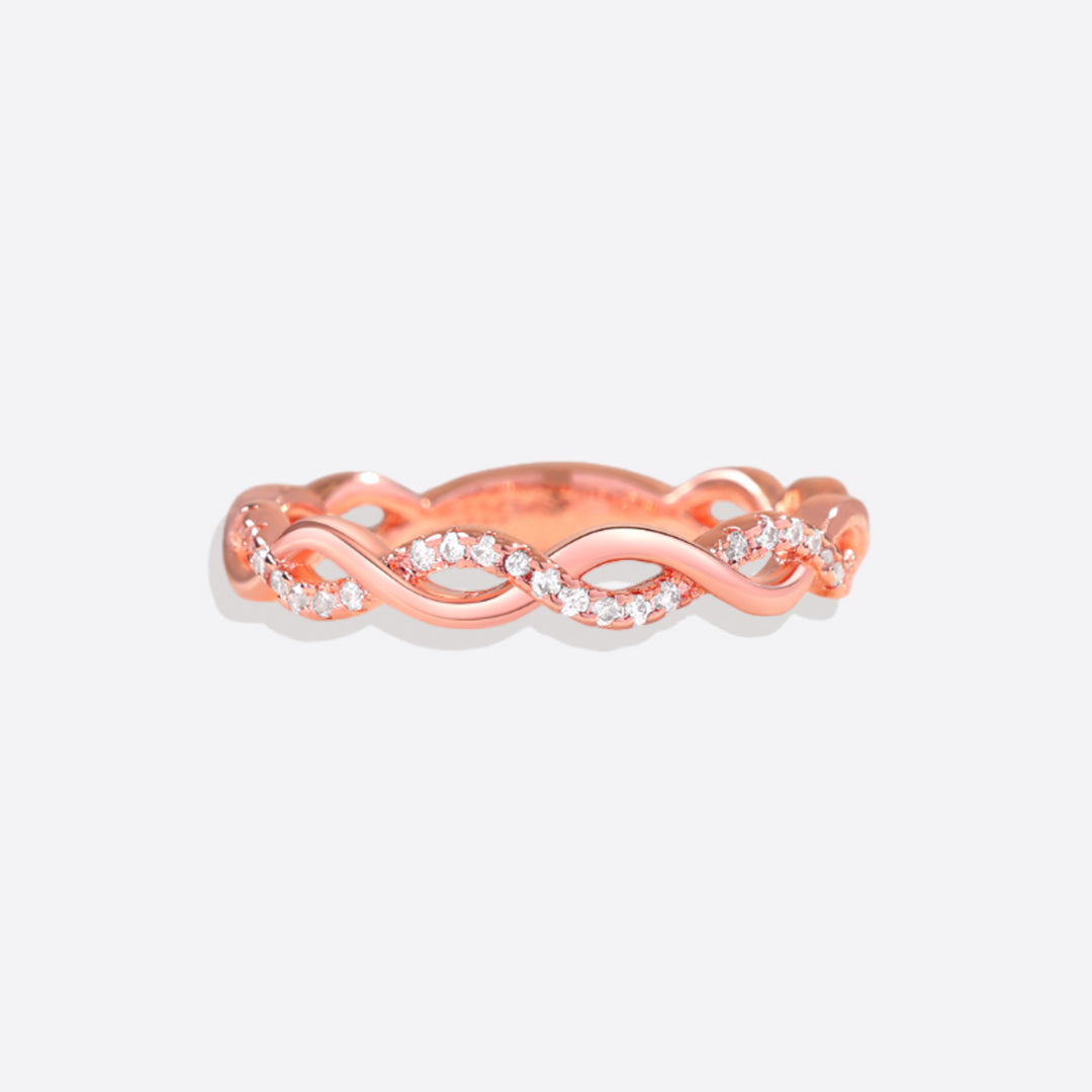 Dieses exquisite Schmuckstück besticht durch sein zartes Twist-Design und ist mit funkelnden, Pavé-gefassten Kunstdiamanten verziert, die das Licht wunderschön einfangen. Perfekt zum alleinigen Tragen für einen dezenten Schimmer oder kombiniert mit anderen Ringen für ein starkes Statement. Dieser Ring ist ideal für den Alltag und vereint Raffinesse mit Vielseitigkeit.