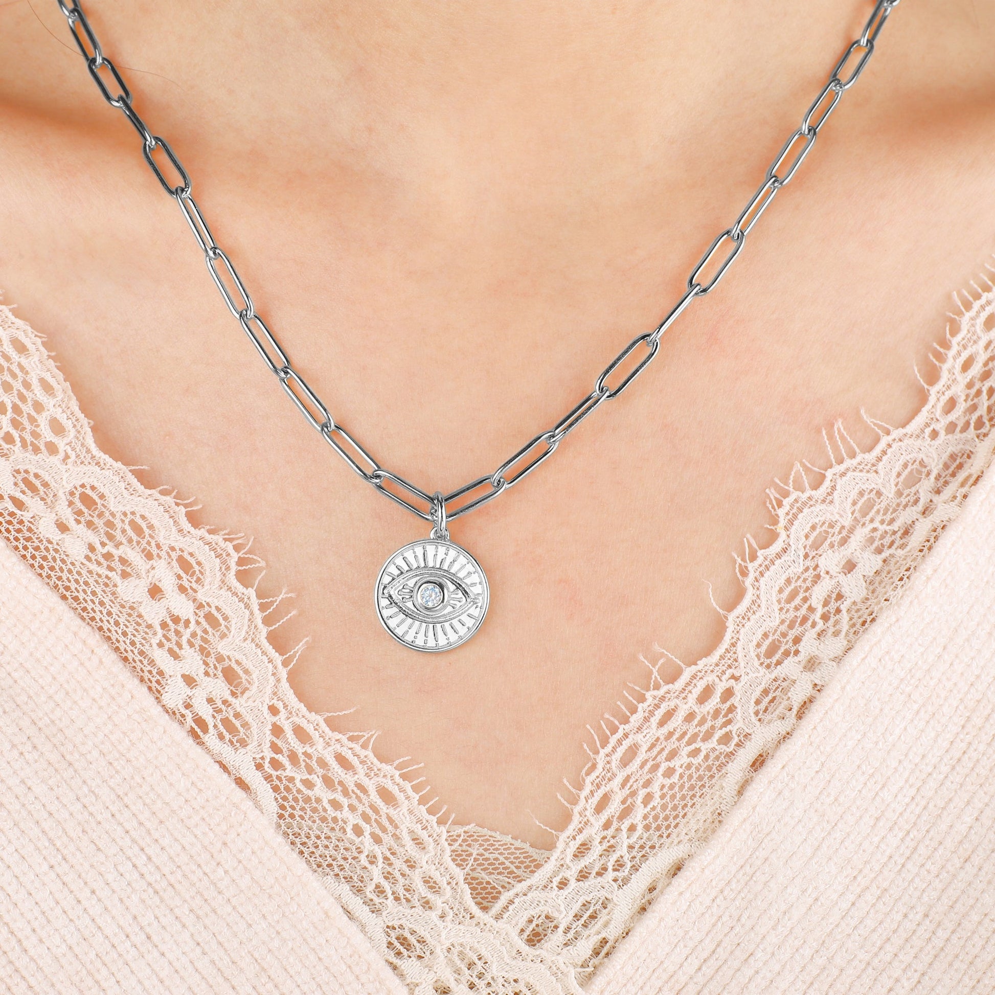 Ob Sie sich für einen besonderen Anlass schick machen oder Ihre Alltagskleidung betonen möchten, die Halskette mit Münzanhänger „Böses Auge“ und Büroklammerkette ist eine vielseitige und schicke Wahl. Sie ist auch ein aufmerksames Geschenk für einen besonderen Menschen und bietet nicht nur ein stilvolles Accessoire, sondern auch ein Symbol für Schutz und Fürsorge.