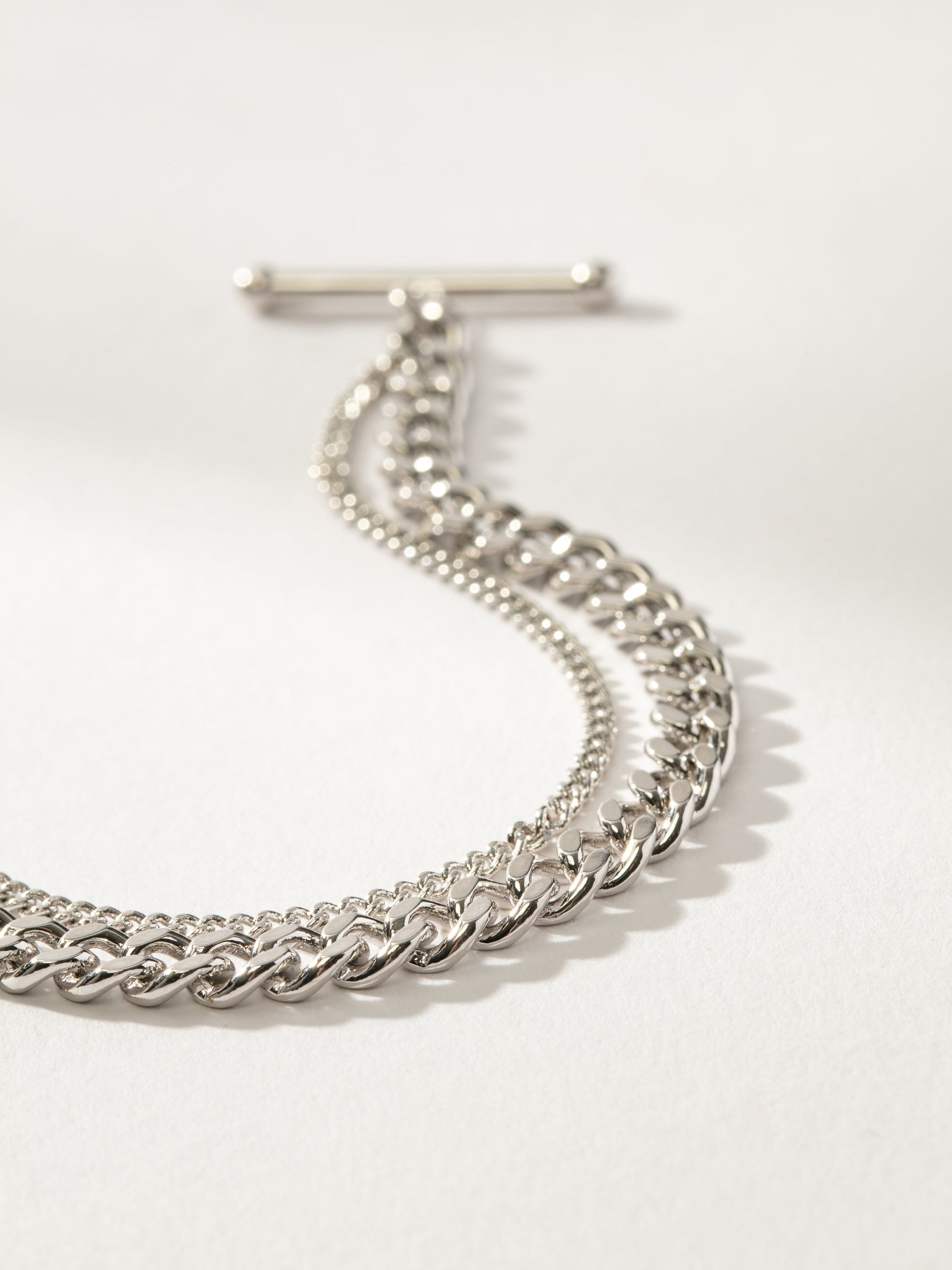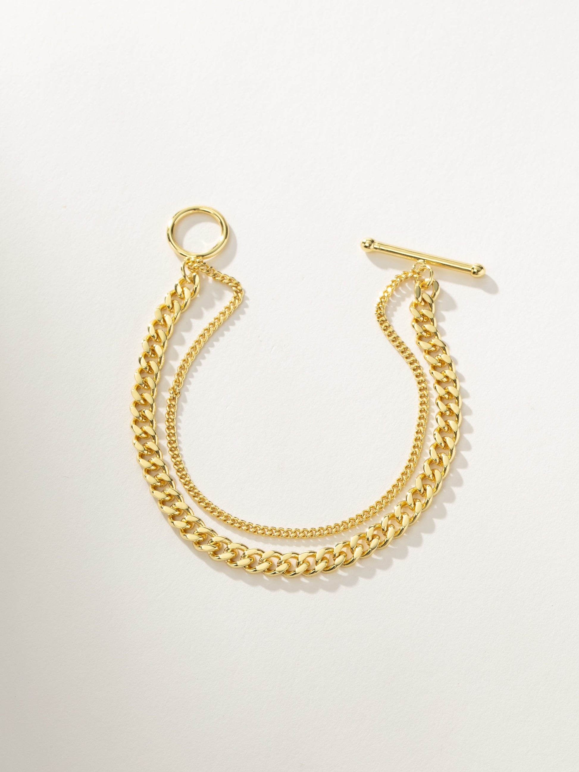 Es ist okay, etwas Besonderes zu haben, besonders wenn man dafür ein mehrlagiges Armbandset braucht. Unser Extra Chain Bracelet ist in Silber und Gold erhältlich und besteht aus zwei unterschiedlich großen Panzerketten, die sich in der Mitte mit einem Knebelverschluss treffen. Für einen komplett mehrlagigen Look kombinieren Sie dieses vormontierte Armband mit einem Stück aus unserer Layer Up Kollektion .