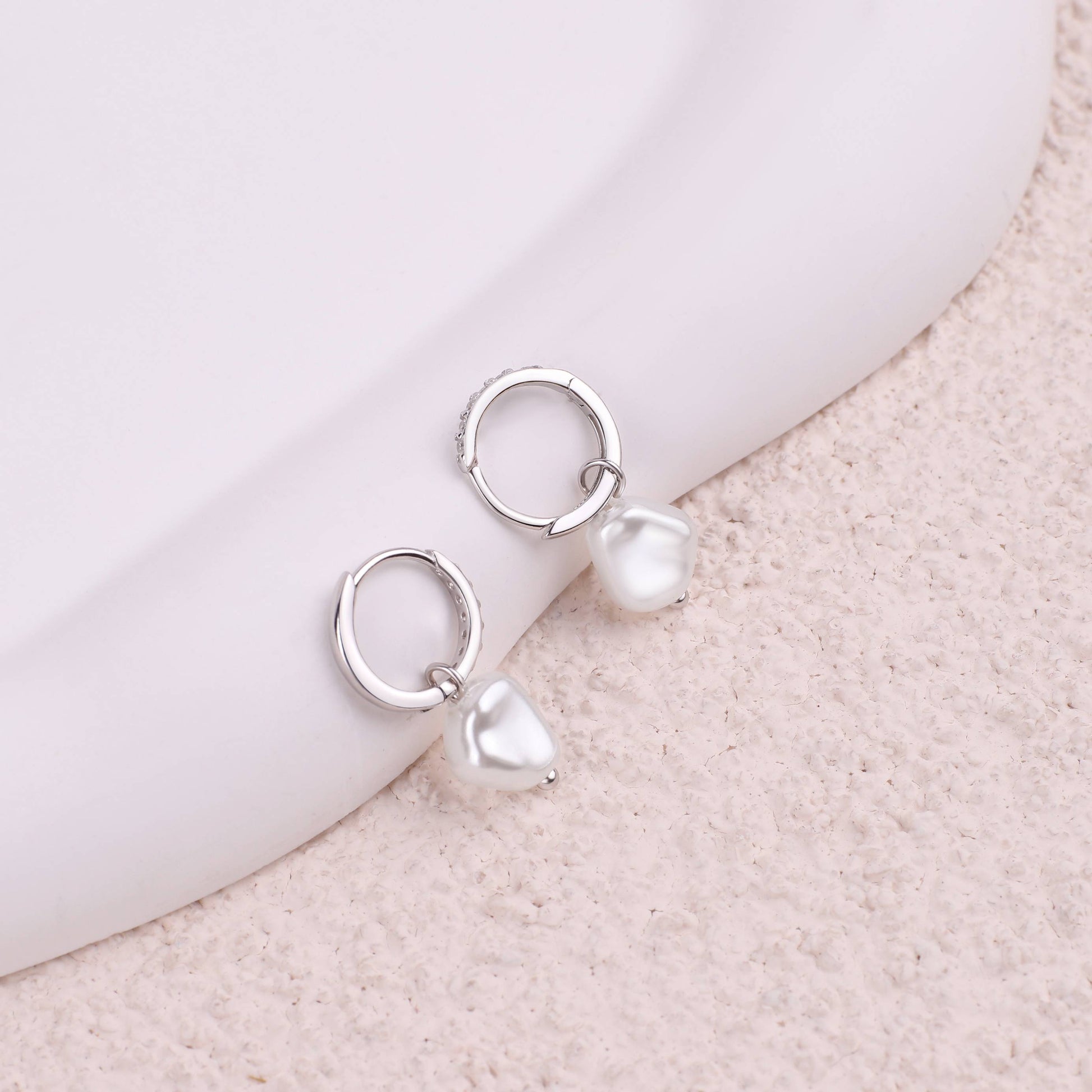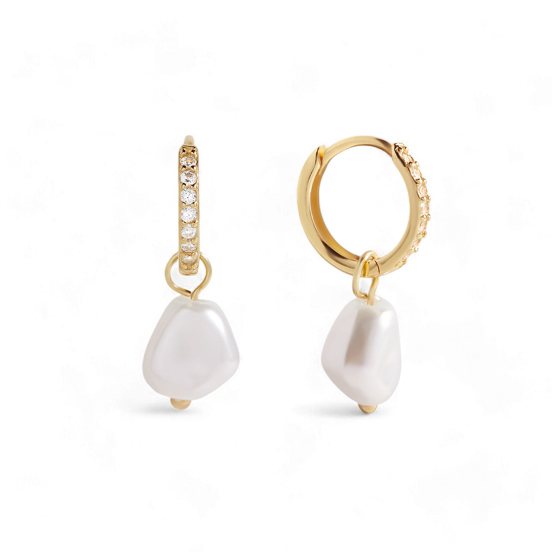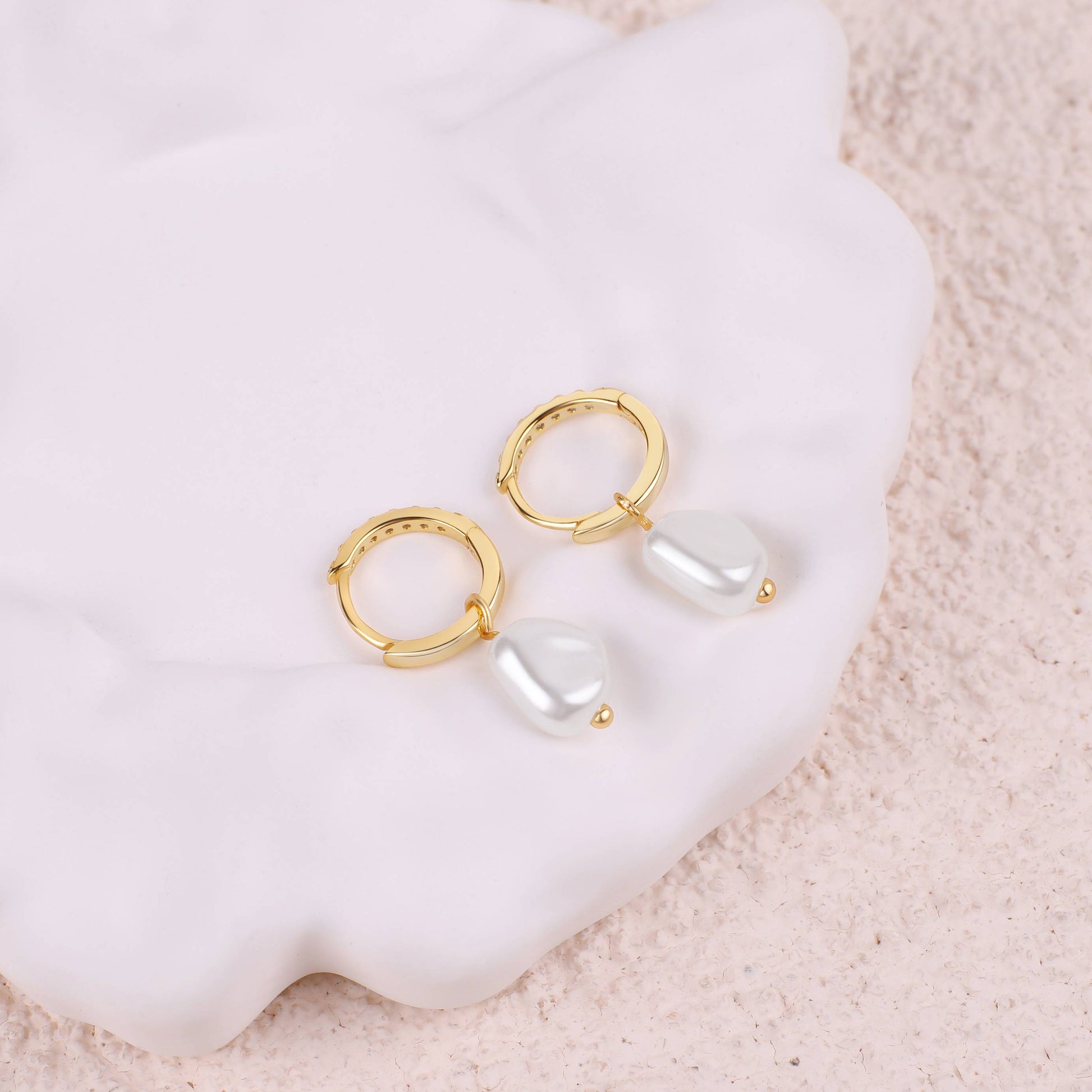 Süßwasserperlen-Tropfen-Pavé-Huggie-Ohrringe