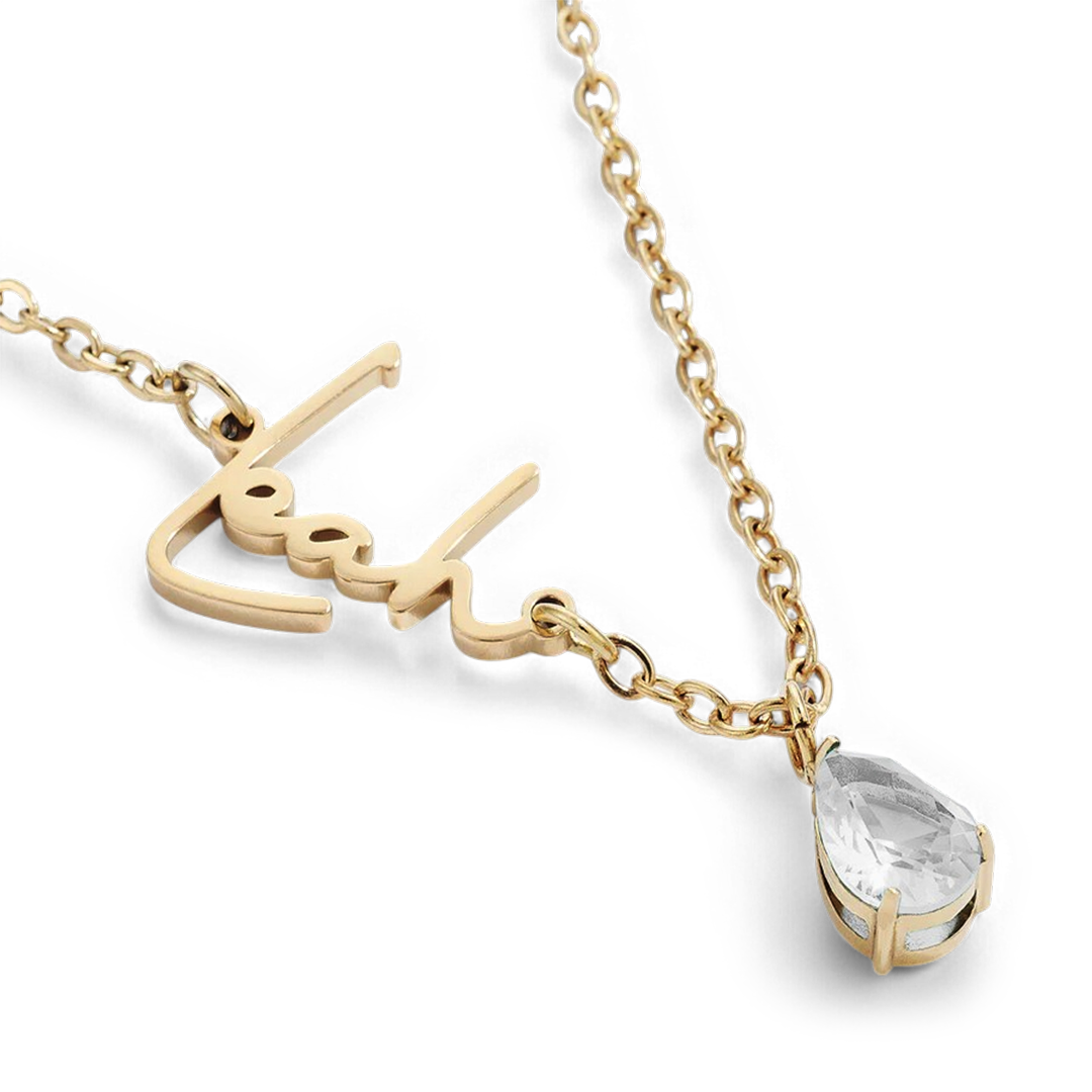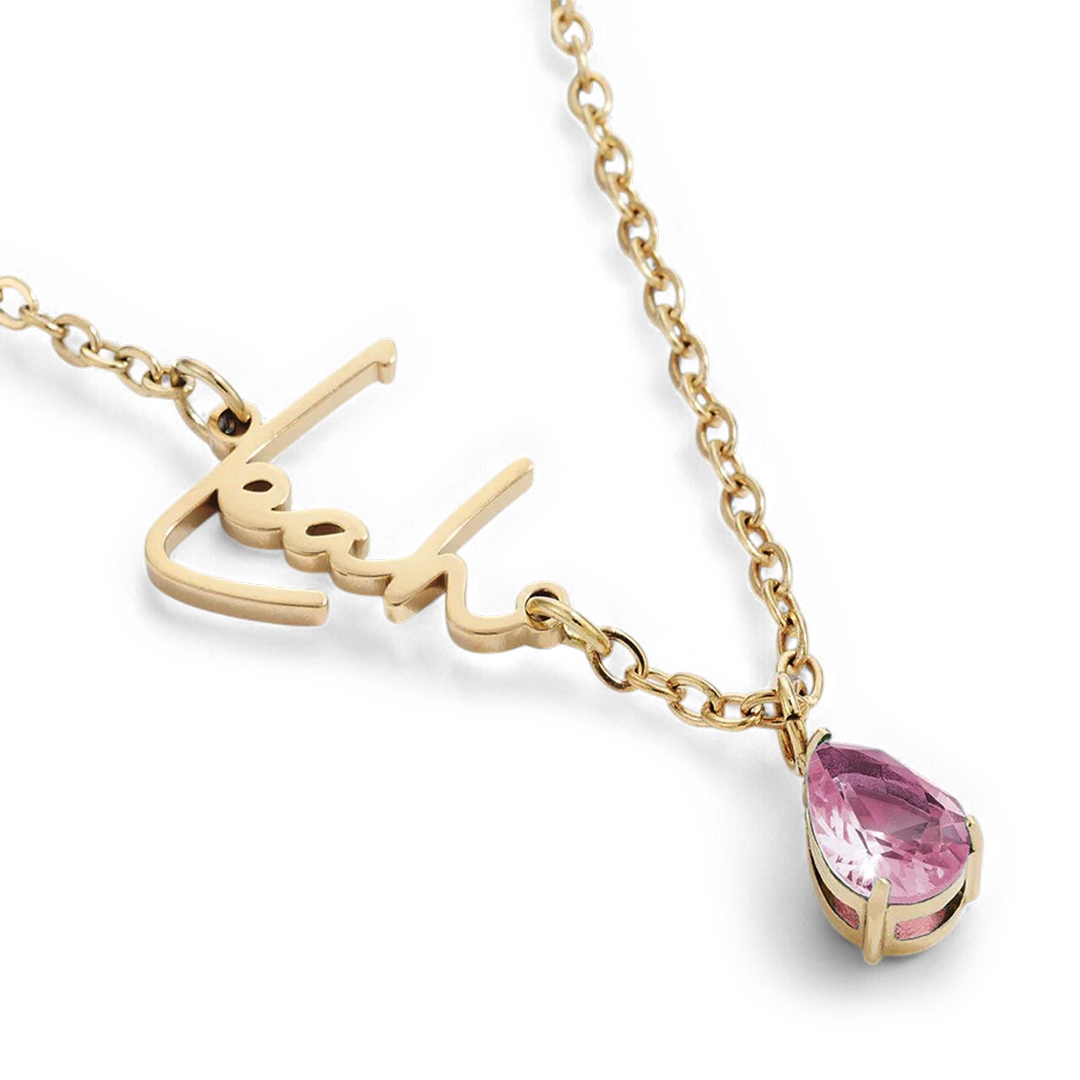 Feiern Sie das Wichtigste. Diese handgefertigte Namenskette mit Geburtsstein verbindet persönliche Eleganz mit einer bedeutungsvollen Note. Neben Ihrem Wunschnamen schimmert ein Geburtsstein. Mühelos schick, ist sie ein alltägliches und herzliches Geschenk.