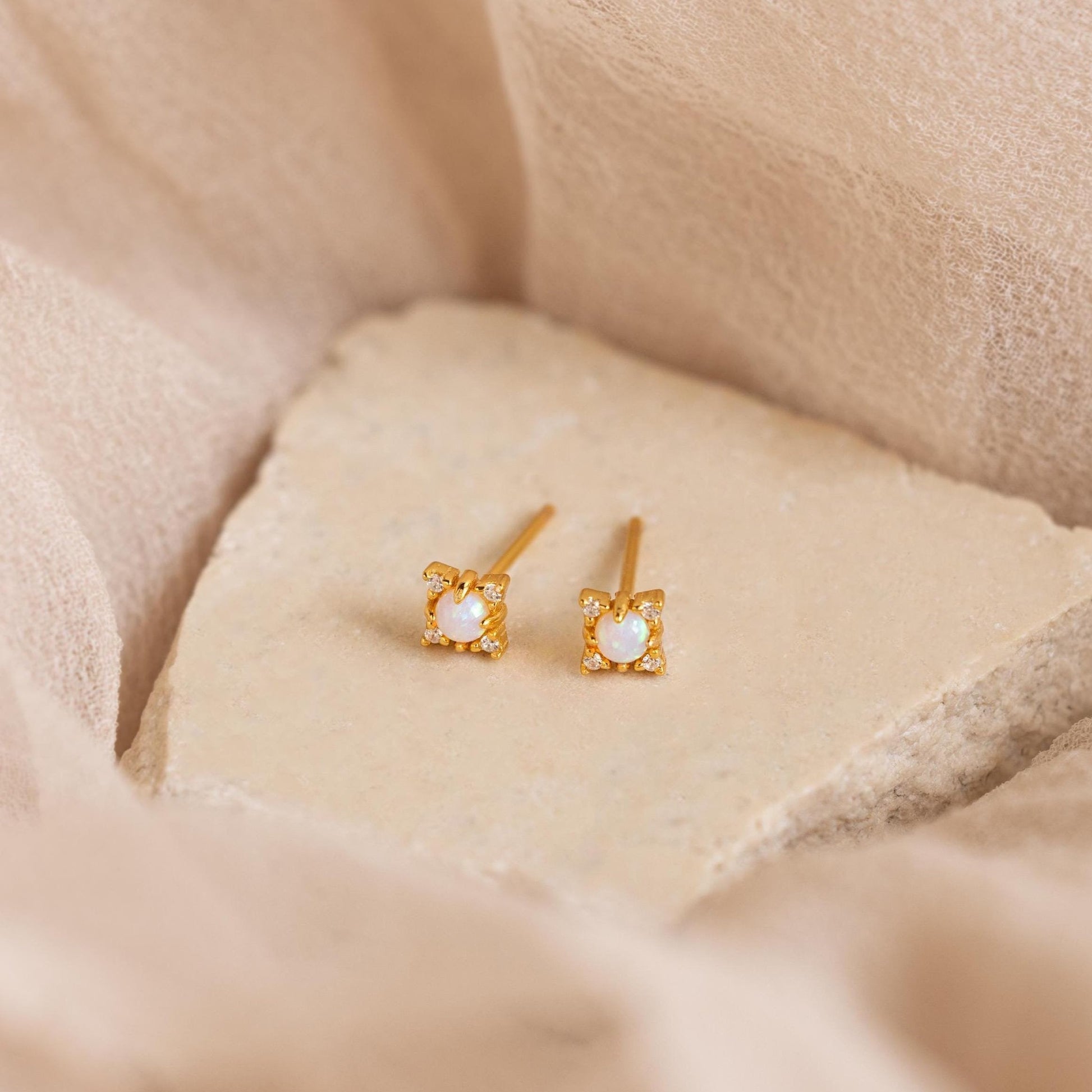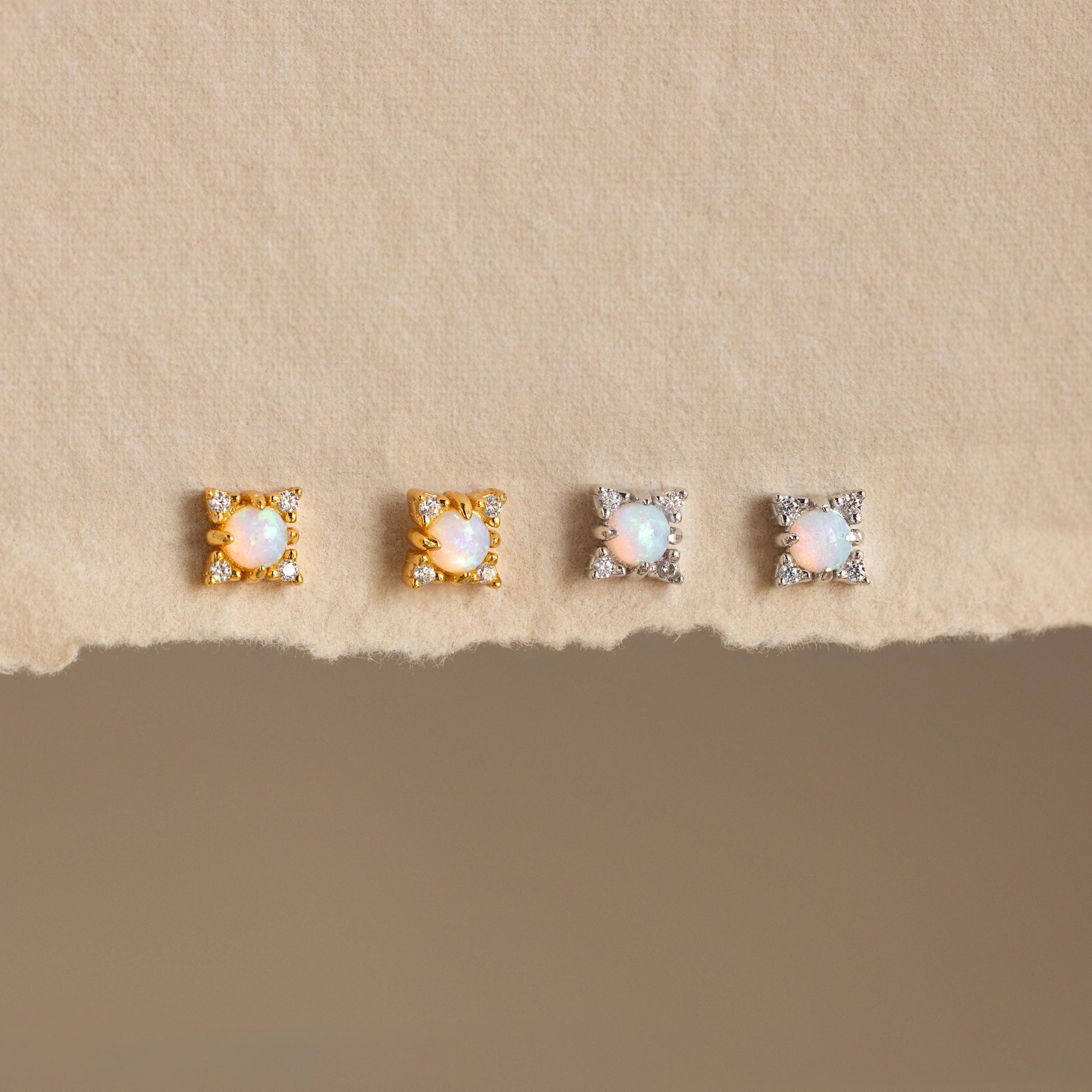 - Mit ~3 mm großen Opal-CZ-Edelstein-Ohrsteckern mit ~1 mm großen CZ-Diamanten | Stärke: 21