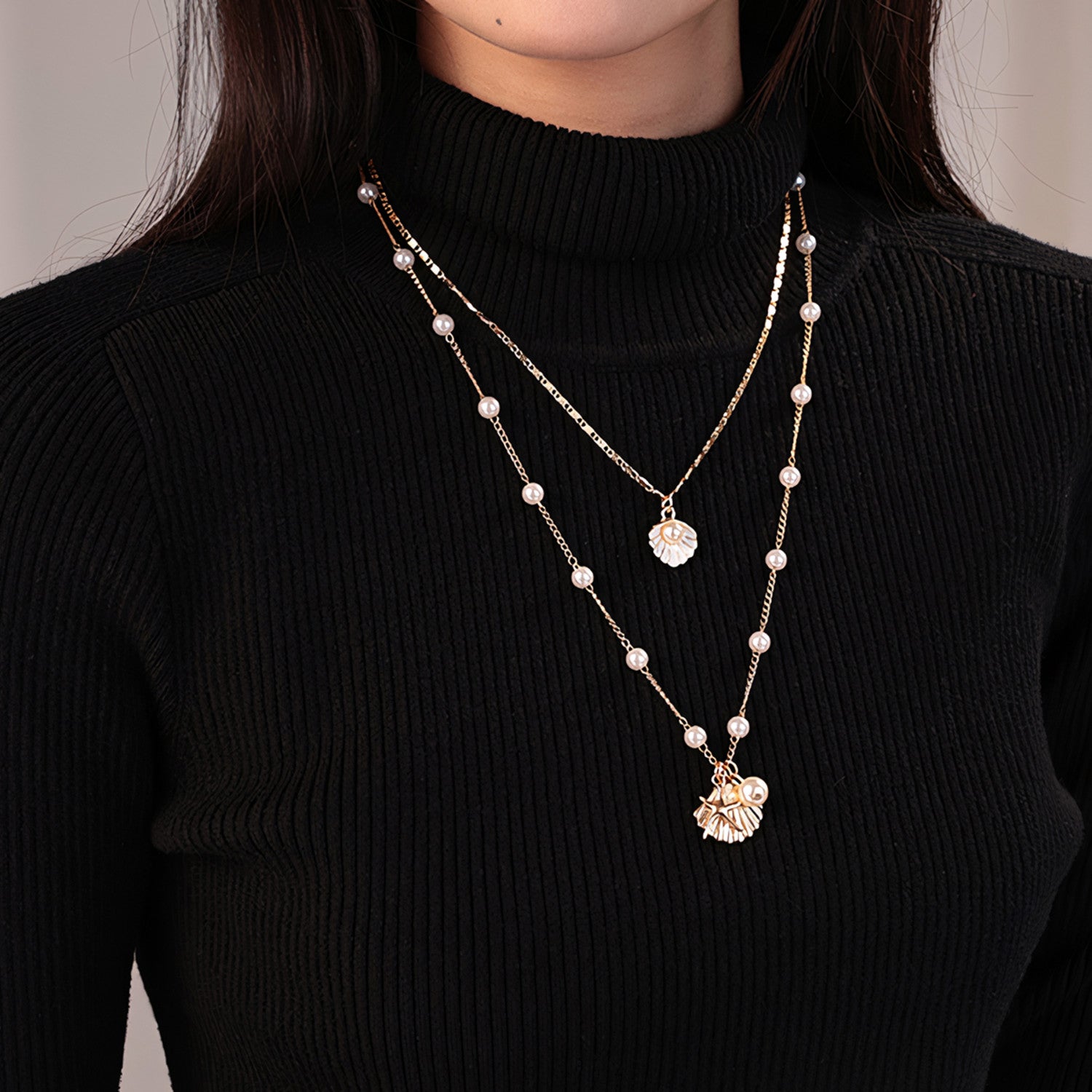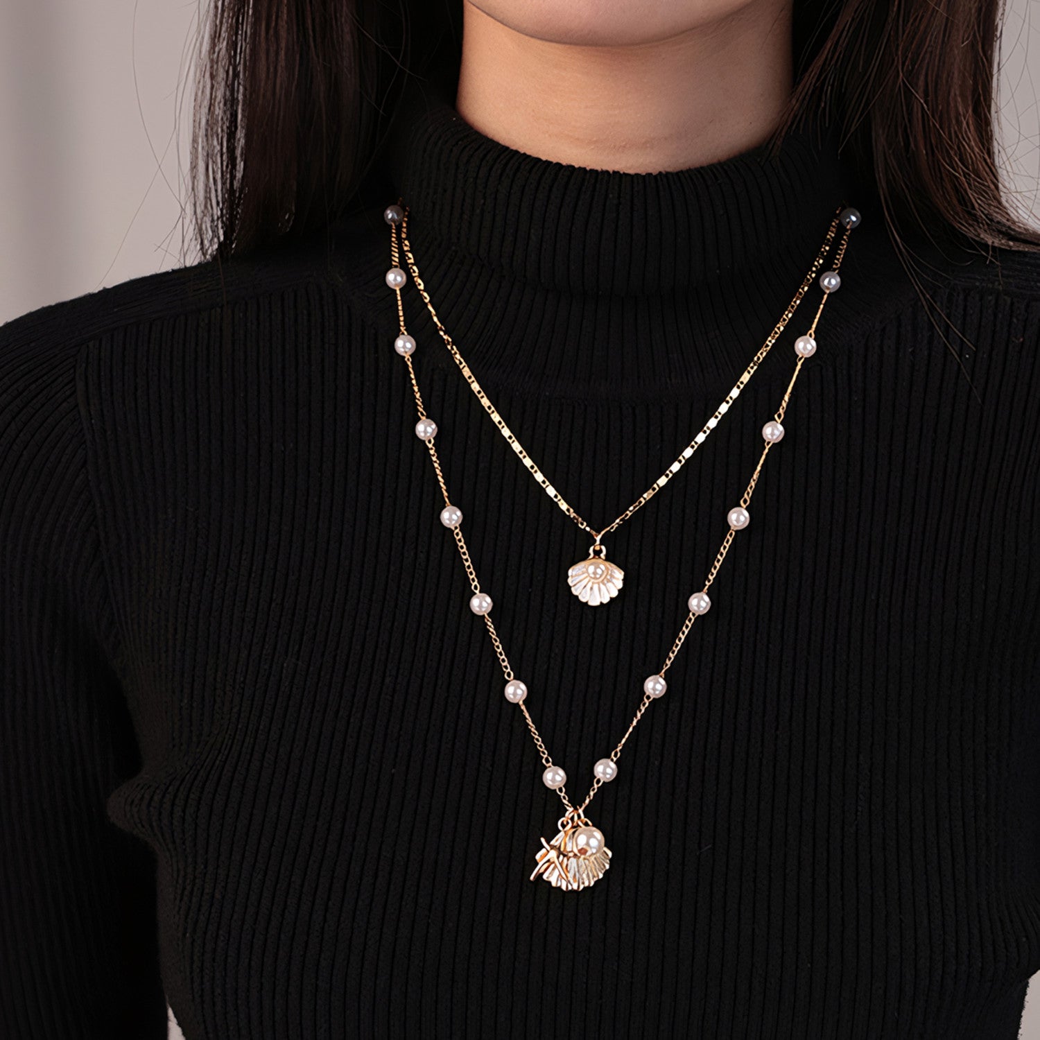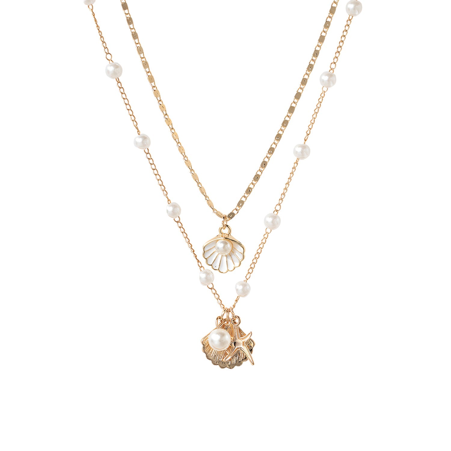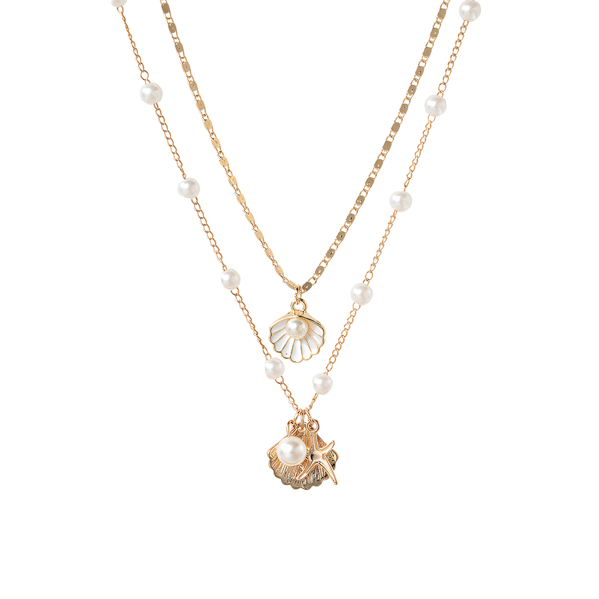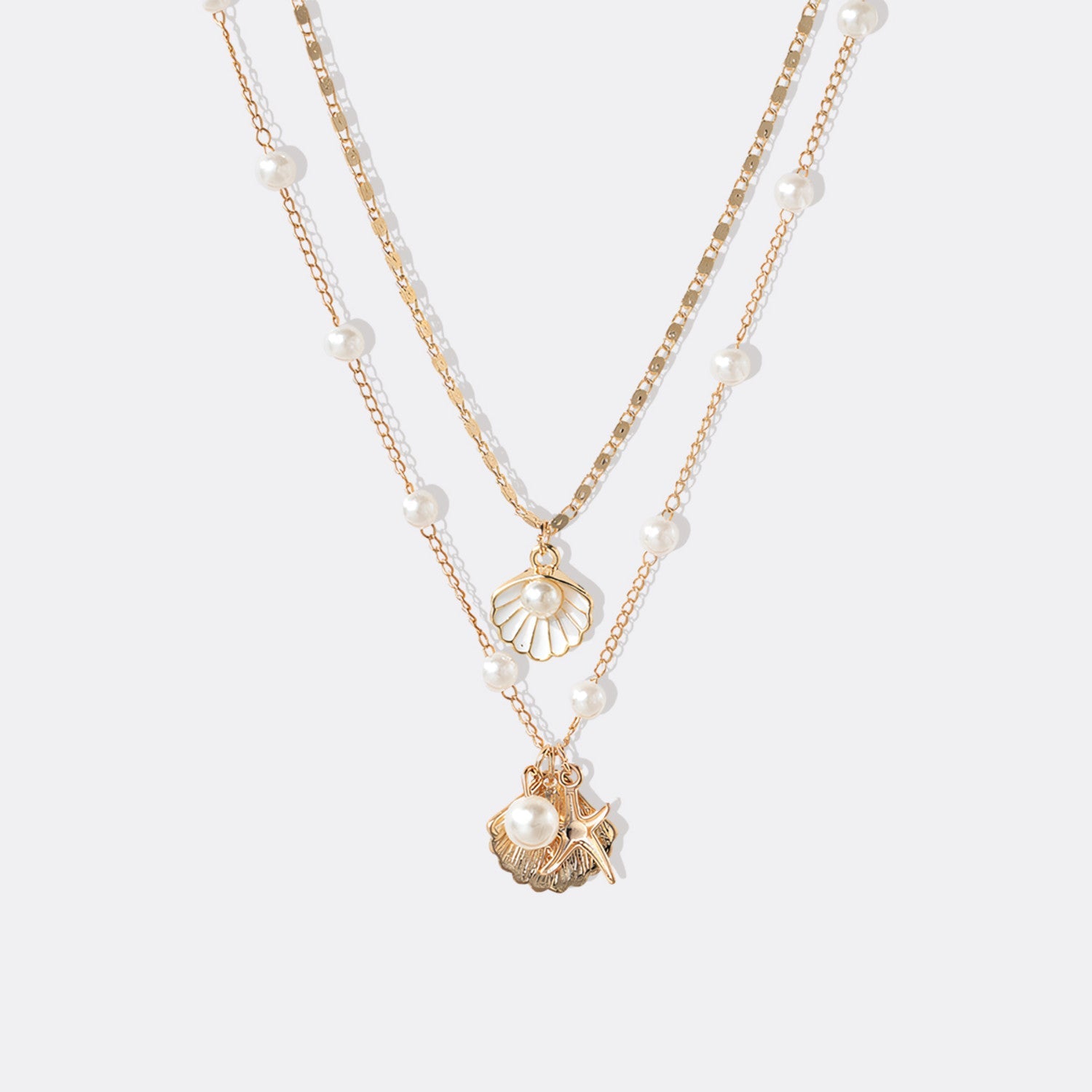 Halsketten-Set mit Perlen- und Muschelanhänger