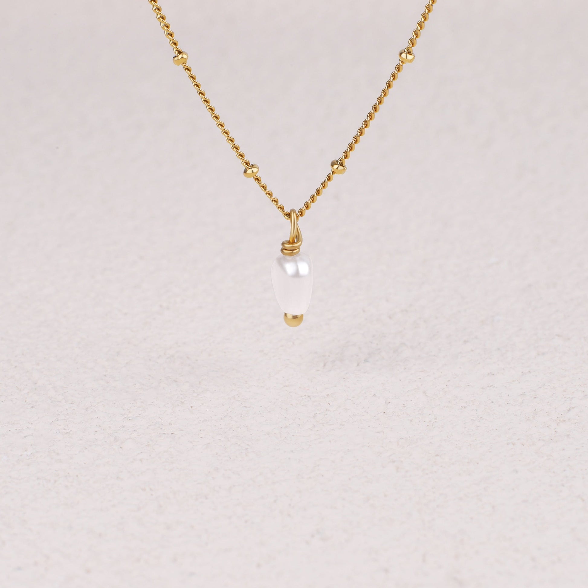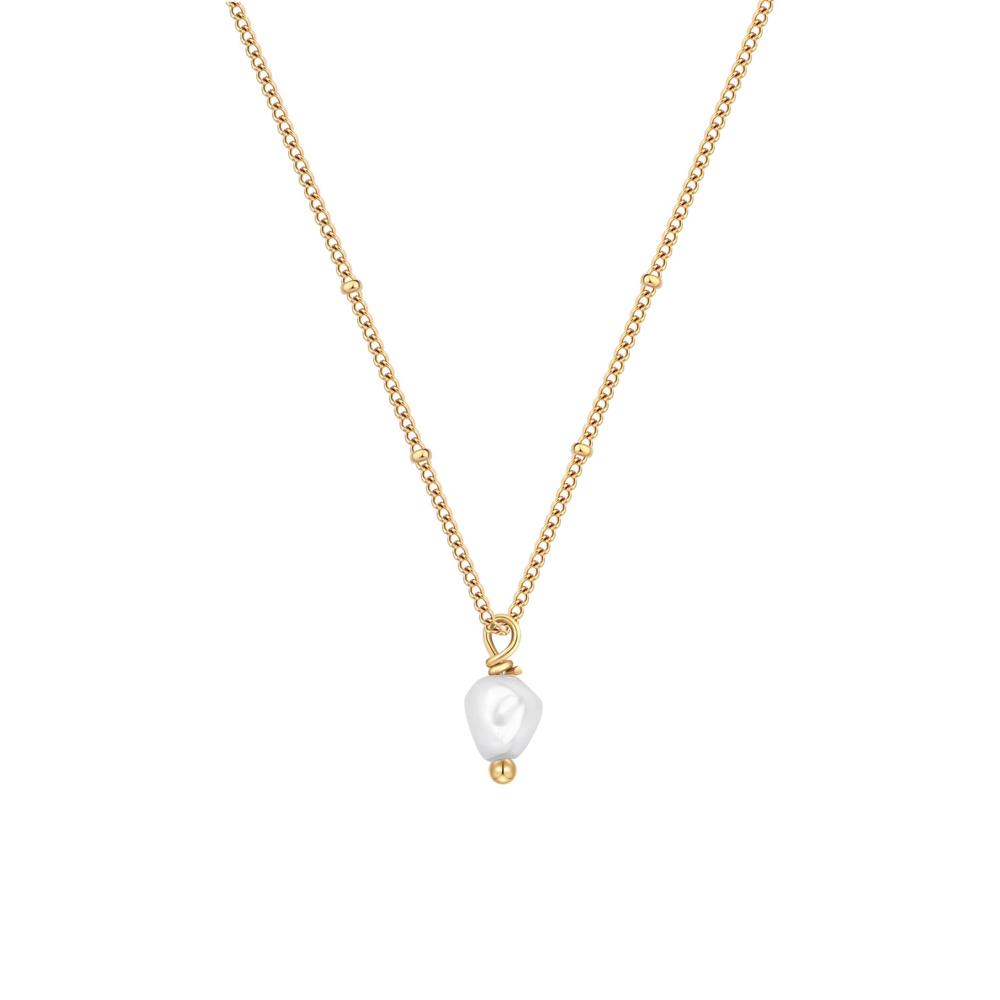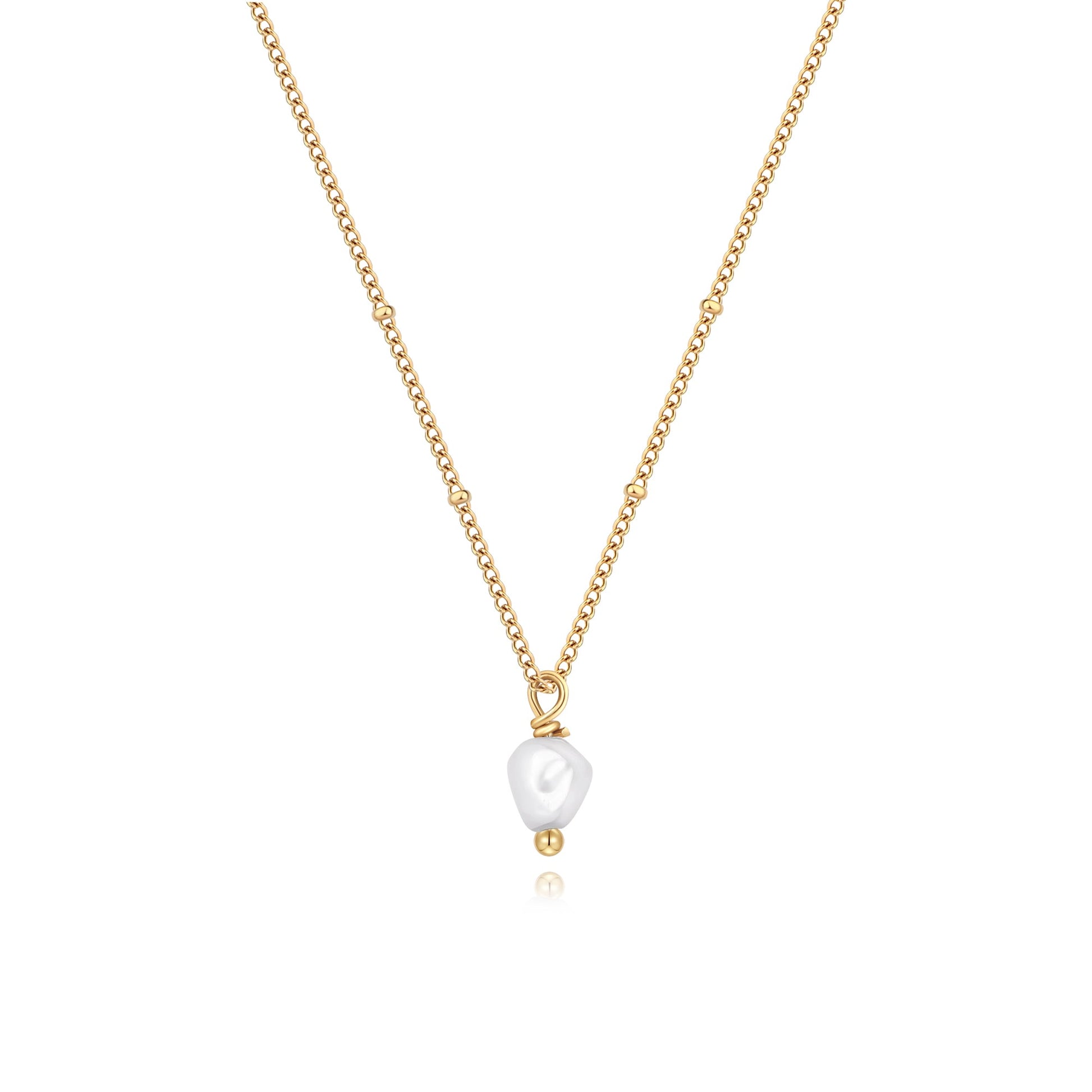 Die Halskette wird durch eine zarte Ankerkette aus Sterlingsilber ergänzt, die mit einer luxuriösen Schicht aus 18 Karat Gold veredelt ist. Die Vergoldung verleiht einen warmen, satten Farbton und bildet einen perfekten Hintergrund für die natürliche Schönheit der Perle. Die Kombination aus Gold und Perle ist klassisch und modern zugleich und eignet sich für vielfältige Anlässe, vom Alltag bis hin zu formelleren Anlässen.
