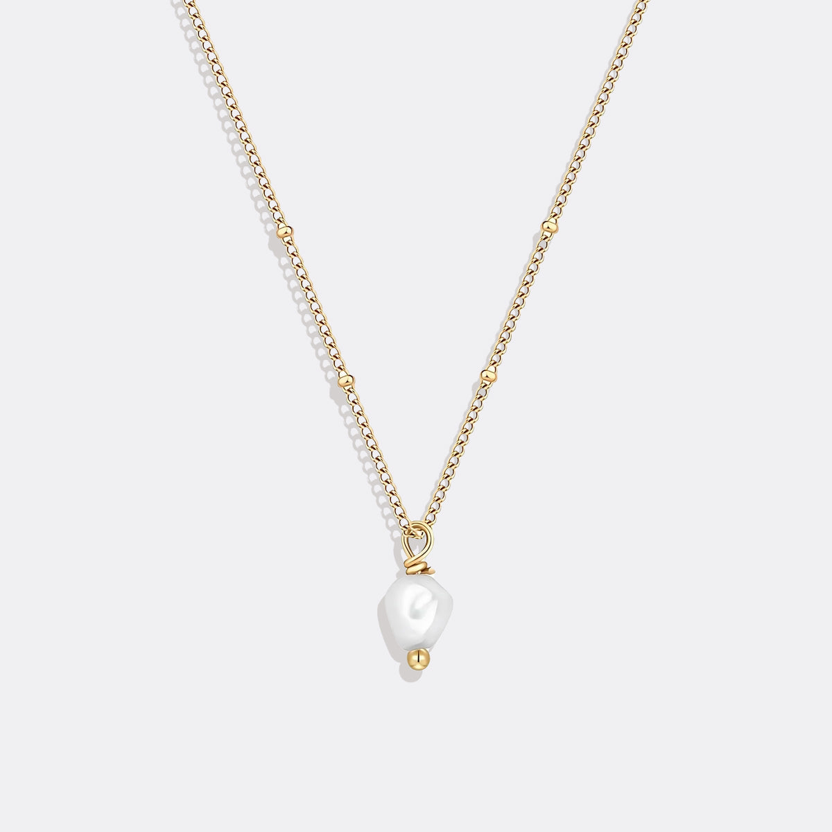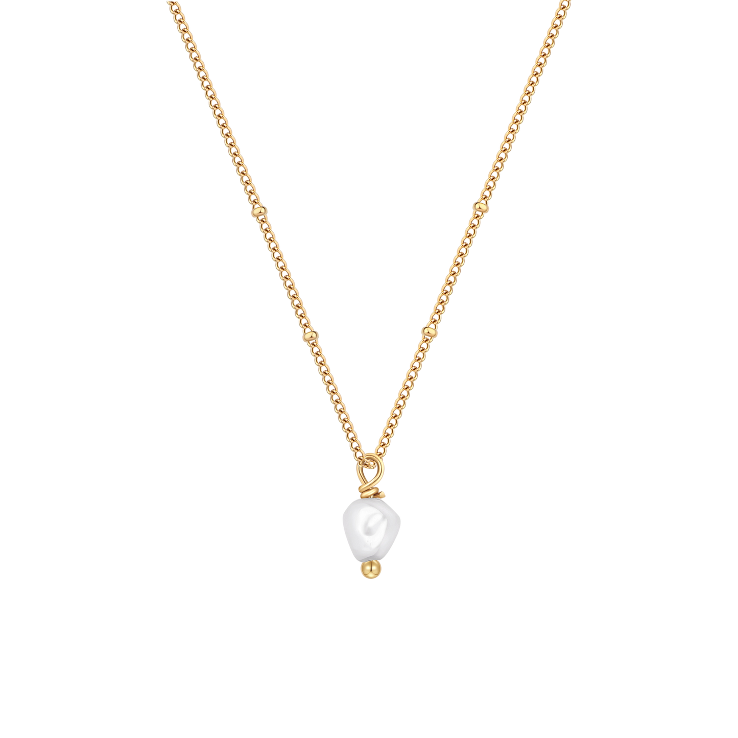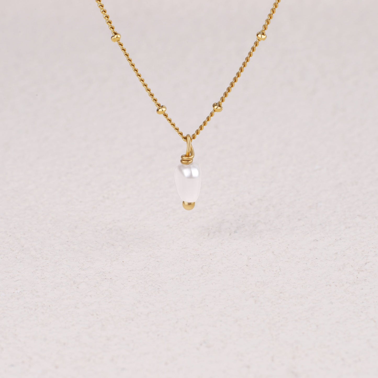 Die Halskette wird durch eine zarte Ankerkette aus Sterlingsilber ergänzt, die mit einer luxuriösen Schicht aus 18 Karat Gold veredelt ist. Die Vergoldung verleiht einen warmen, satten Farbton und bildet einen perfekten Hintergrund für die natürliche Schönheit der Perle. Die Kombination aus Gold und Perle ist klassisch und modern zugleich und eignet sich für vielfältige Anlässe, vom Alltag bis hin zu formelleren Anlässen.