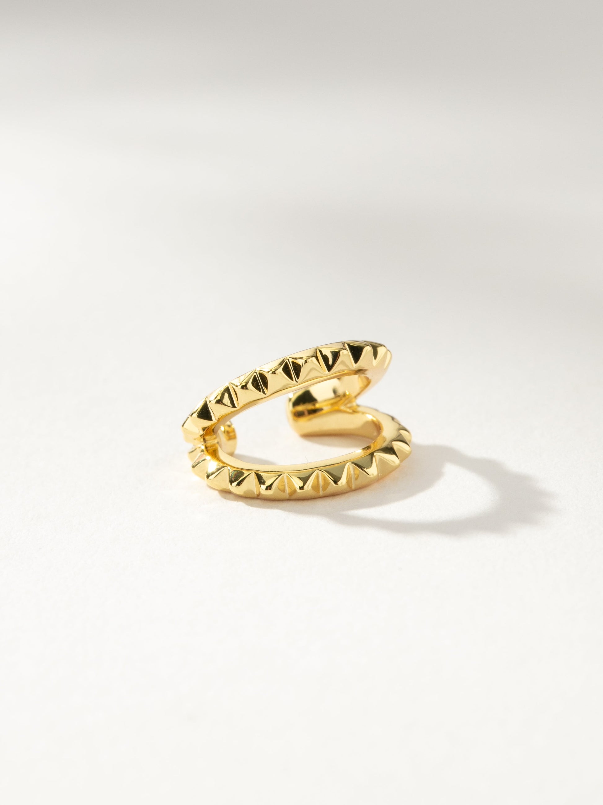 Verleihen Sie Ihrem Look mit unserem strukturierten Ear Cuff das gewisse Etwas. Dieser goldene Doppel-Creolen-Ohrring verleiht Ihrem Ohrring-Sortiment eine zusätzliche Note, ohne dass Sie ein zusätzliches Piercing benötigen (eine echte Win-Win-Situation, wenn Sie uns fragen). Vervollständigen Sie Ihr Set mit unseren strukturierten Huggies und strukturierten Mini-Huggies . Sie lieben unsere Ear Cuffs? Entdecken Sie hier mehr .