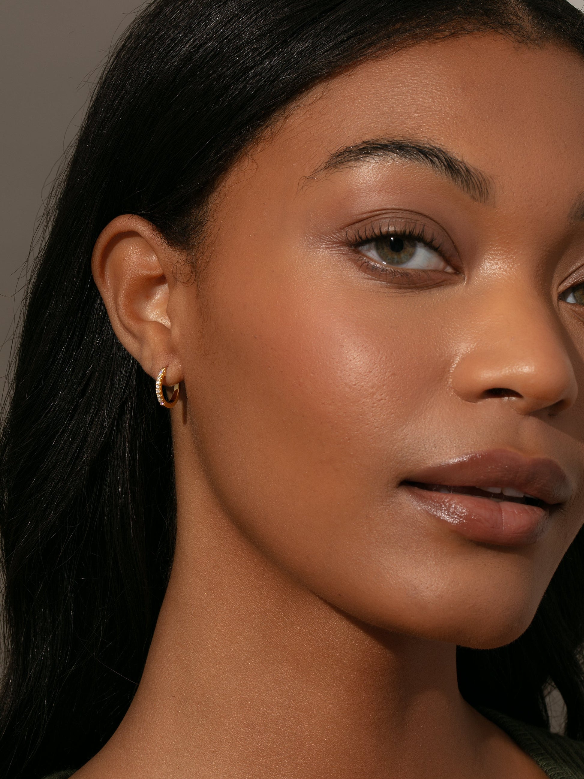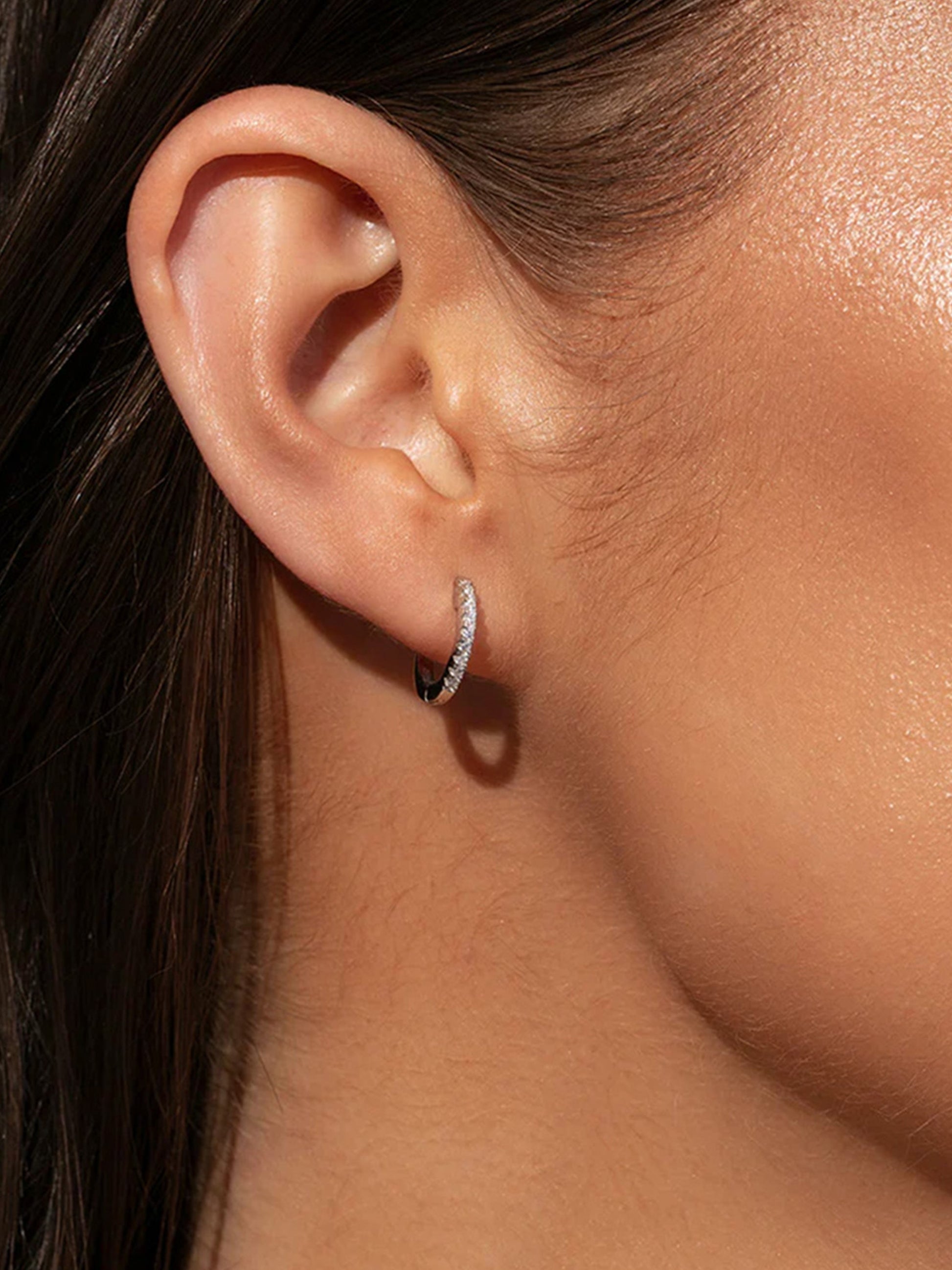 Veredeln Sie Ihre kleinen Creolen aus Sterlingsilber oder Gold mit Pavé-Details. Unsere Tiny Huggies verleihen Ihrem Ohrring nicht nur zusätzlichen Glanz, sondern sind auch das perfekte Schmuckstück für jeden Tag. Für einen minimalistischen Look kombinieren Sie diese Huggies mit unseren schlichten Ohrsteckern . Für einen Statement-Look kombinieren Sie diese Mini-Creolen mit unseren Rocker-Girl-Ohrringen .