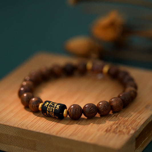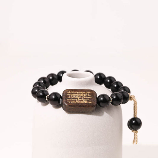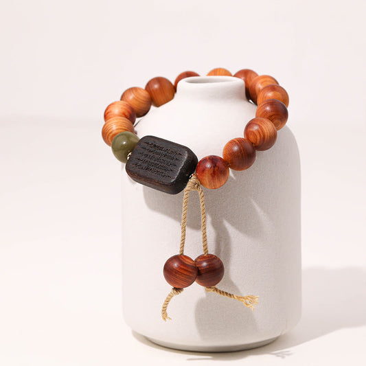 Pulsera de la paz con piedras de Buda, madera de ébano y escrituras grabadas