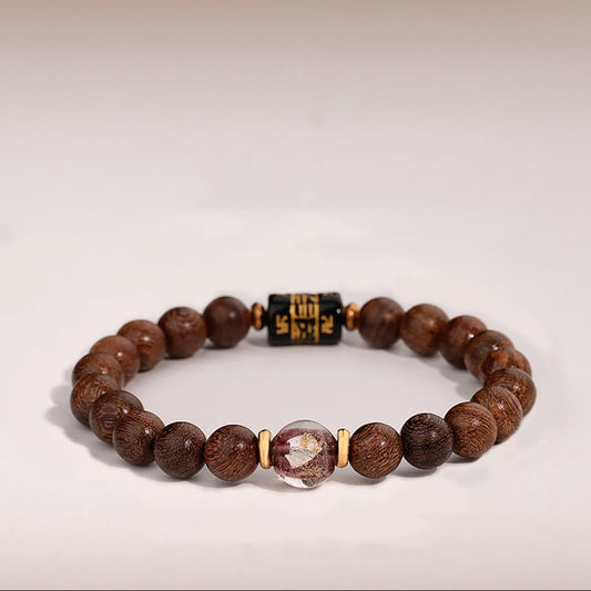 Pulsera de madera de agar con piedras de Buda y esmaltado para la buena suerte