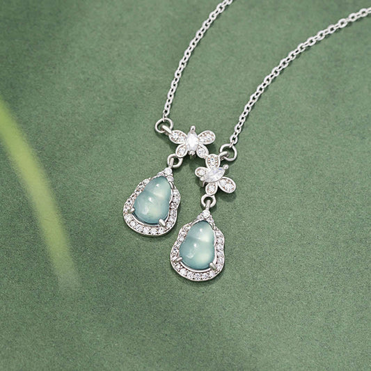 Collar con colgante de mariposa de la suerte con doble calabaza de jade verde y piedras de Buda en plata de ley 925