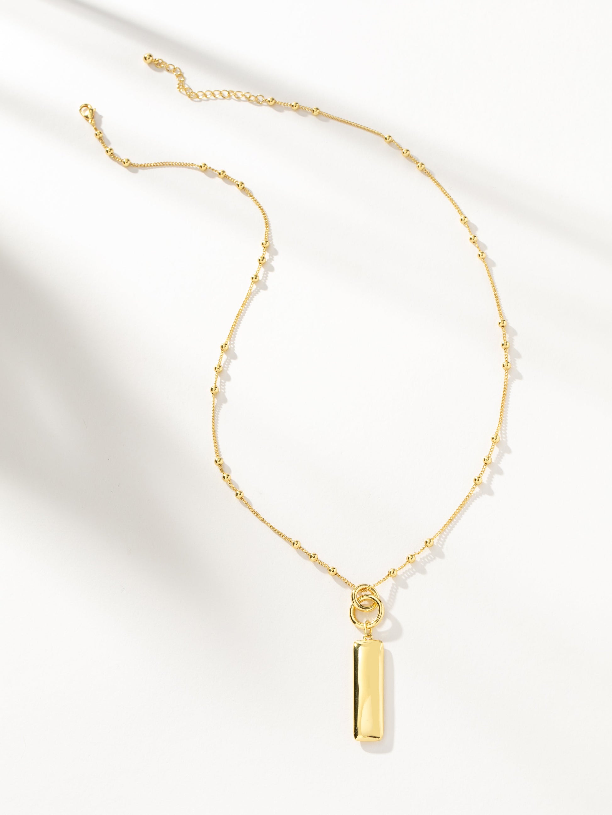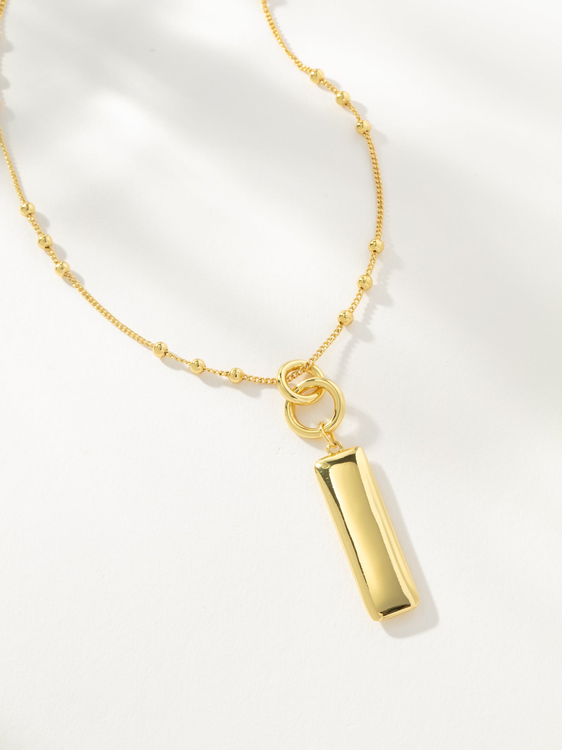 Dale un toque de estilo a tu look con nuestro Collar de Ancla, una cadena de bolas bañada en oro con un llamativo colgante rectangular que cuelga de dos aros entrelazados. No hay muchos colgantes de cadena como este, así que este collar de oro merece un lugar en tu colección diaria.