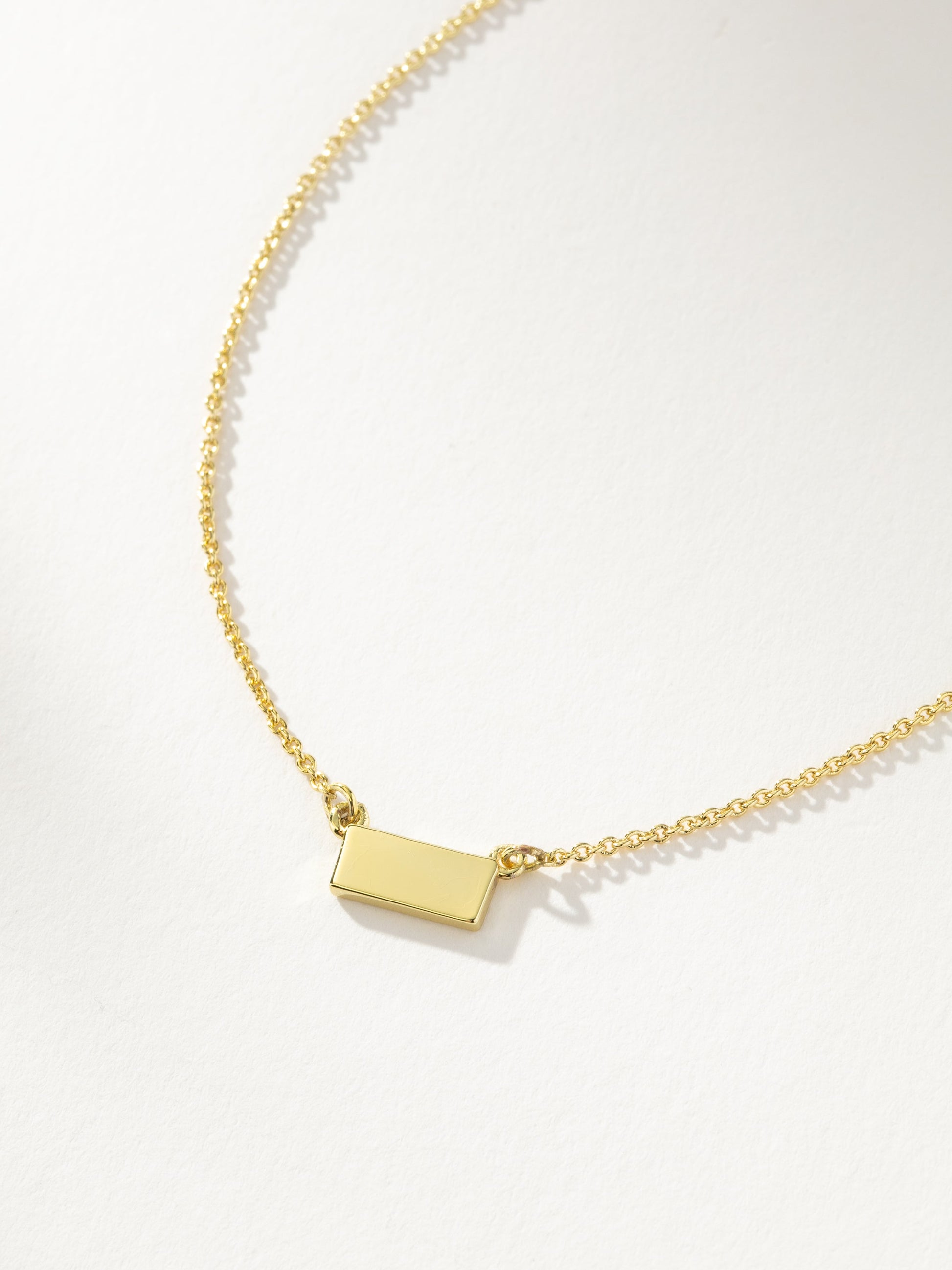 Dale un toque moderno a tu clásico collar de barra de oro con nuestro collar unisex Bellissima. Este collar con colgante y cadena se convertirá rápidamente en uno de tus accesorios de diario gracias a su fácil combinación. Llévalo solo para un toque llamativo o combínalo con un collar de lazo para un look con varias capas.