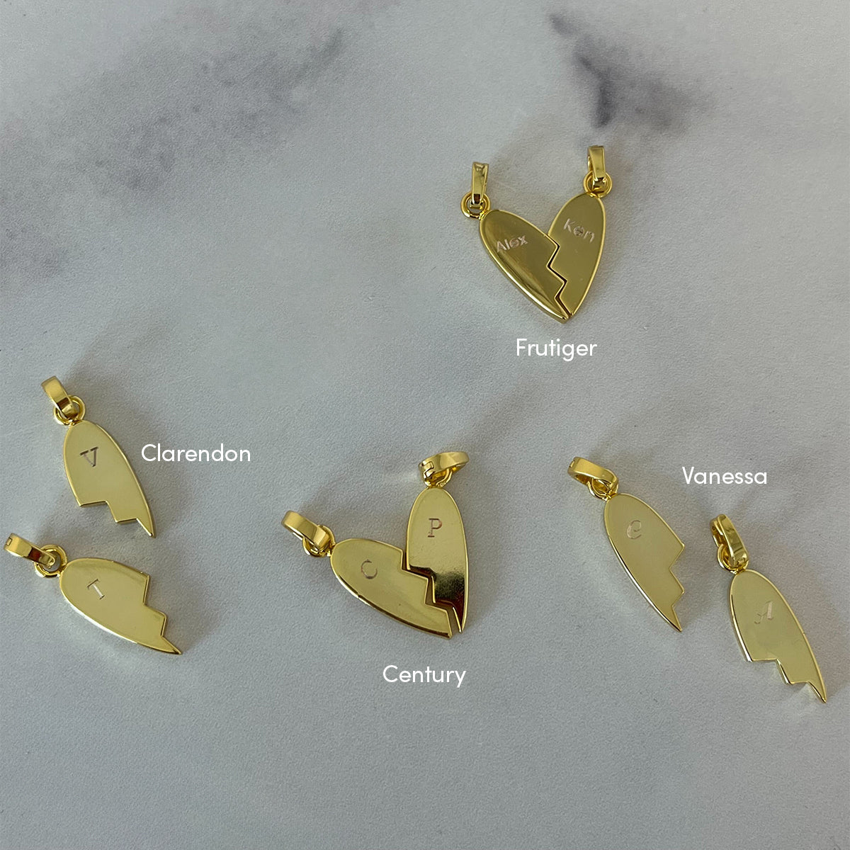Comparte nuestros Charms de Corazón "Better Together" (Set de 2) con tu mejor amiga, hermana, dama de honor, mamá o cualquier persona que tengas un lugar especial en tu corazón. Estos charms de corazón roto no solo son perfectos para tu pulsera o collar de charms, sino que también son grabables. Crea un look personalizado grabando hasta 4 caracteres, por delante y por detrás, en estos charms dorados.