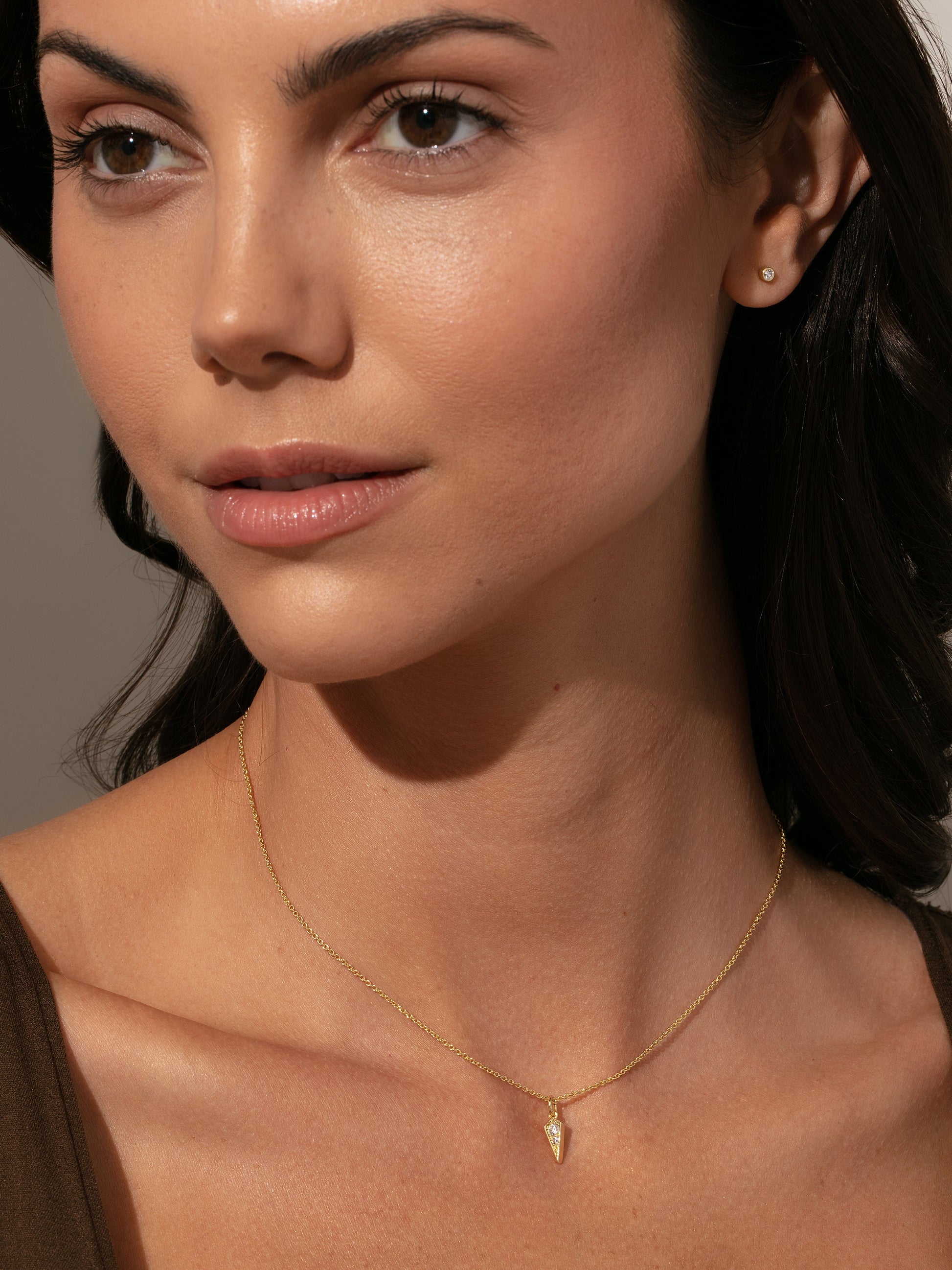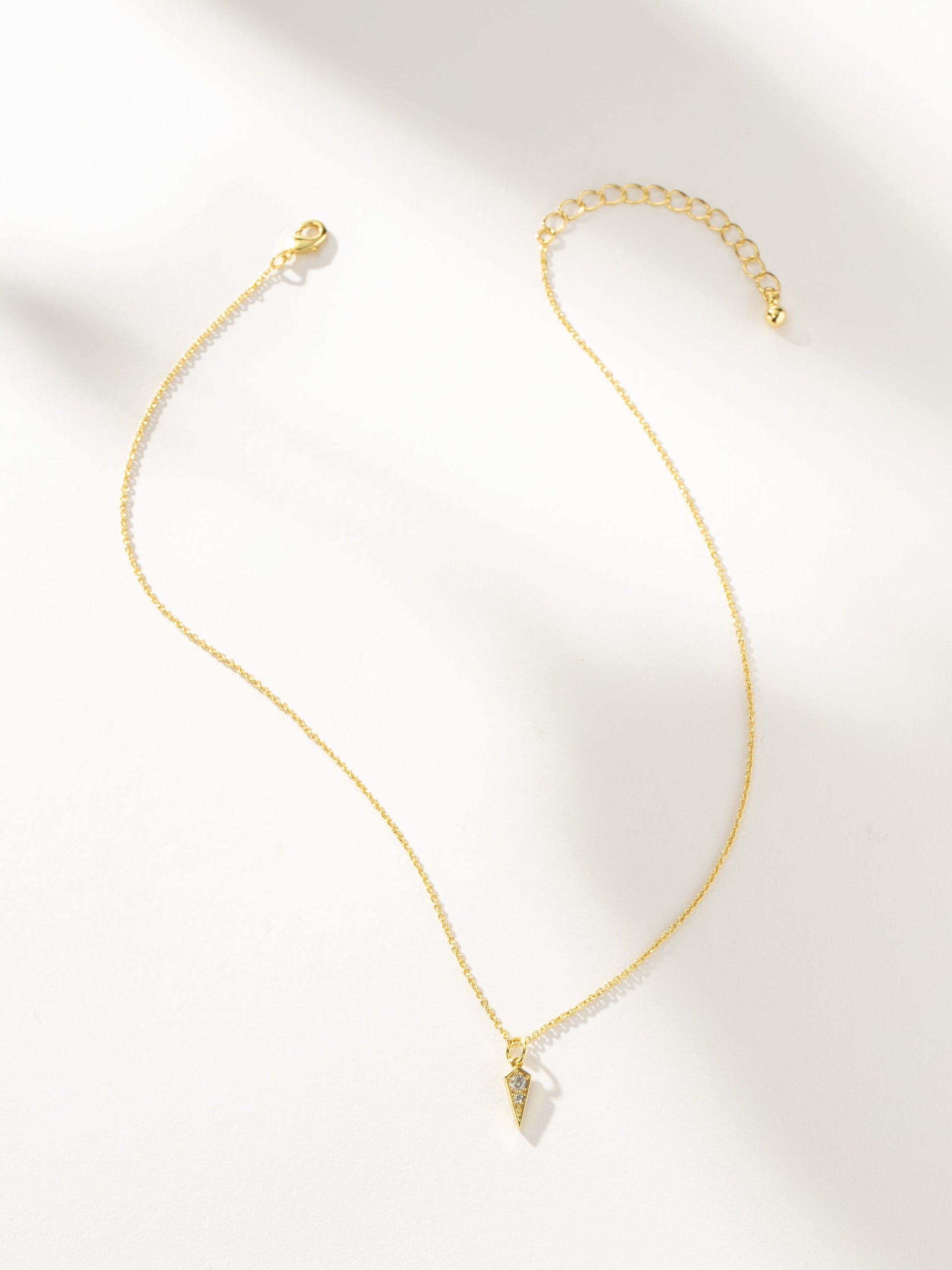 Nuestro collar con colgante Breaking Point es el equilibrio perfecto entre delicadeza y atrevimiento. Con una delicada cadena y un colgante llamativo y brillante, este collar se convertirá en un básico para el día a día. Para recrear el estilo de Kristin, combina este colgante y collar con nuestros collares Linked Up y Rebellion Lariat .