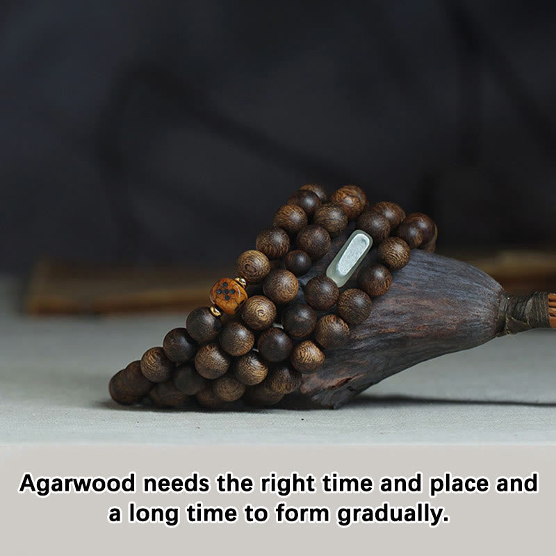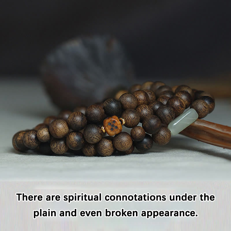 Piedras de Buda 108 cuentas Mala Brunei Agarwood Hetian Jade Yak hueso fuerza equilibrio pulsera