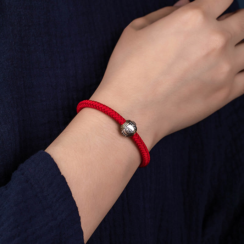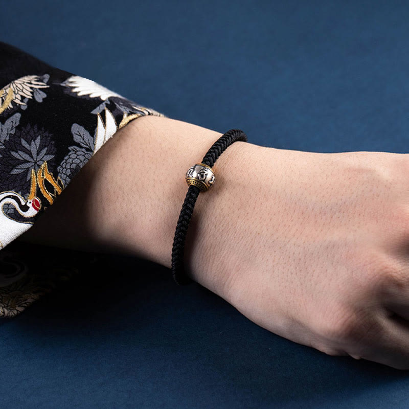 Pulsera trenzada con nudo King Kong, hecha a mano, con piedras de Buda, plata de ley 925, Om Mani Padme Hum, protección de la suerte, hecha a mano en el Tíbet