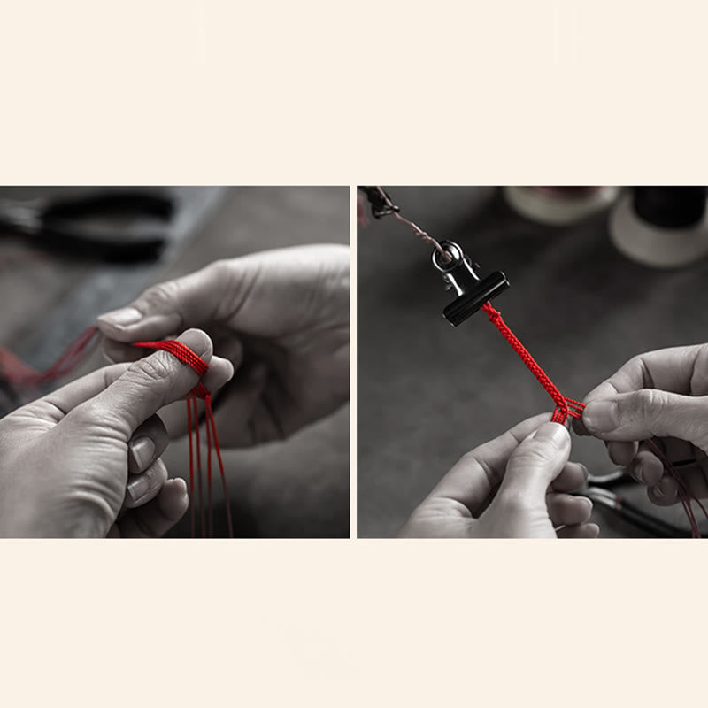 En los linajes del budismo vajrayana tibetano, es común atar un cordón o cuerda alrededor de la muñeca durante las ceremonias. Tradicionalmente, el lama bendice el cordón, hace un nudo y lo impregna con un mantra. Al igual que en otras tradiciones, se dice que estos cordones rojos traen suerte y ofrecen protección. En una antigua leyenda china, el Hilo Rojo del Destino es invisible y une a todos aquellos cuyas vidas se entrelazarán. Está regido por el dios chino del matrimonio, Yue Lao, ya que se asocia principalmente con el vínculo entre dos personas destinadas a casarse. A lo largo de la historia y en diferentes filosofías, el cordón rojo se ha usado para protección, fe, buena suerte, fuerza y conexión.