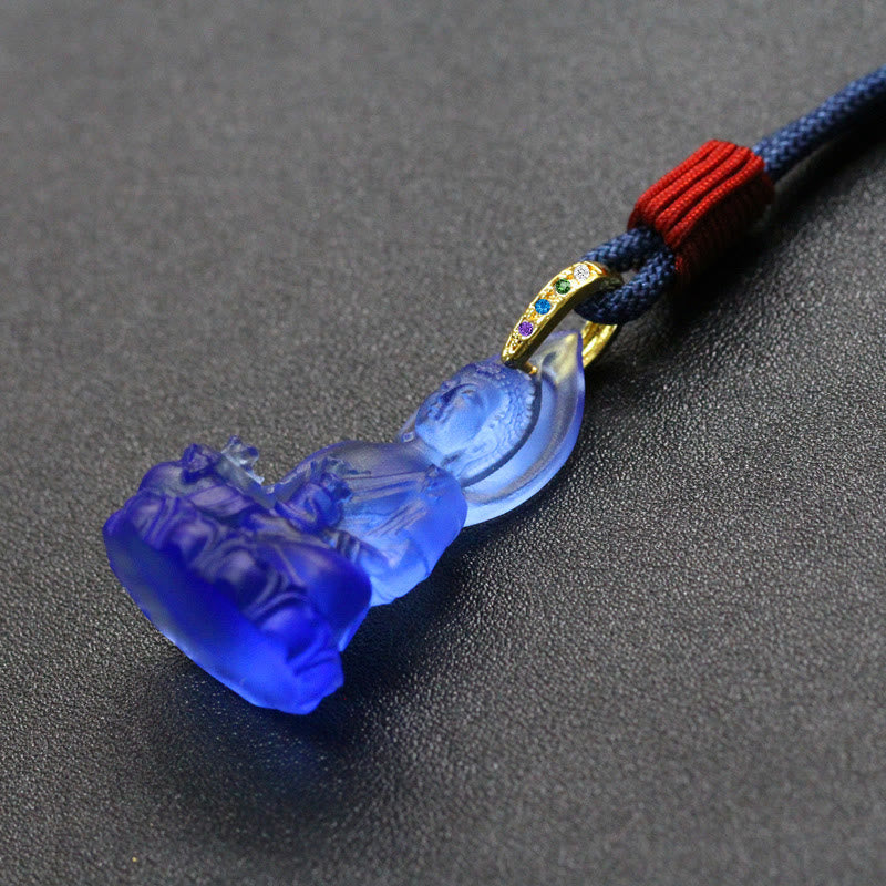 Collar con colgante de amuleto de serenidad de cristal Liuli con piedras de Buda Tathagata azul y Buda de la medicina