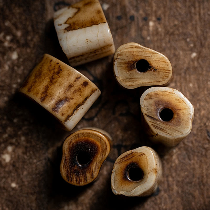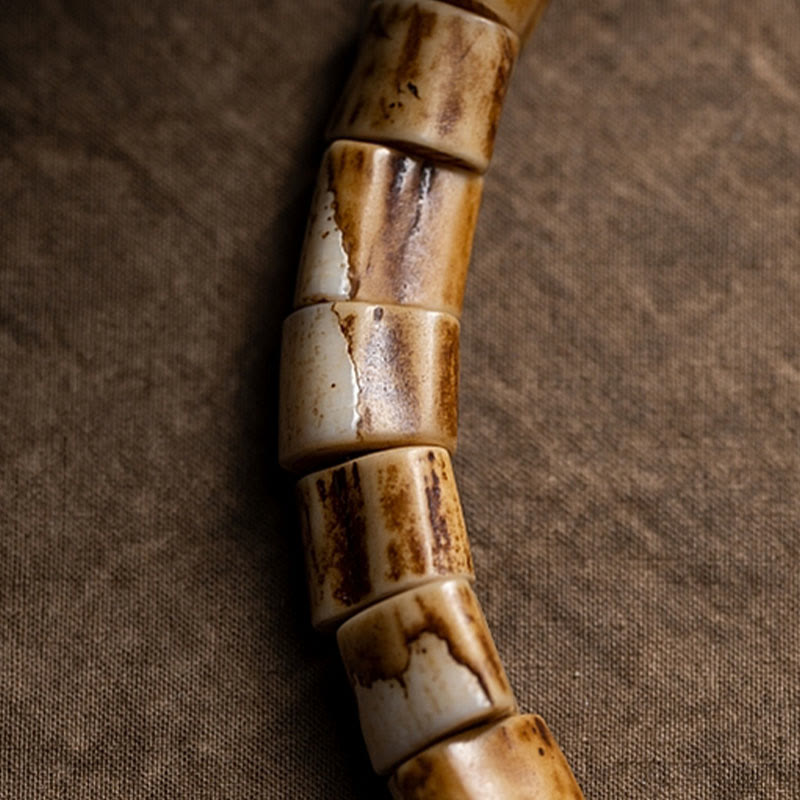 - Material: Hueso de ciervo, hueso de yak, cuerda