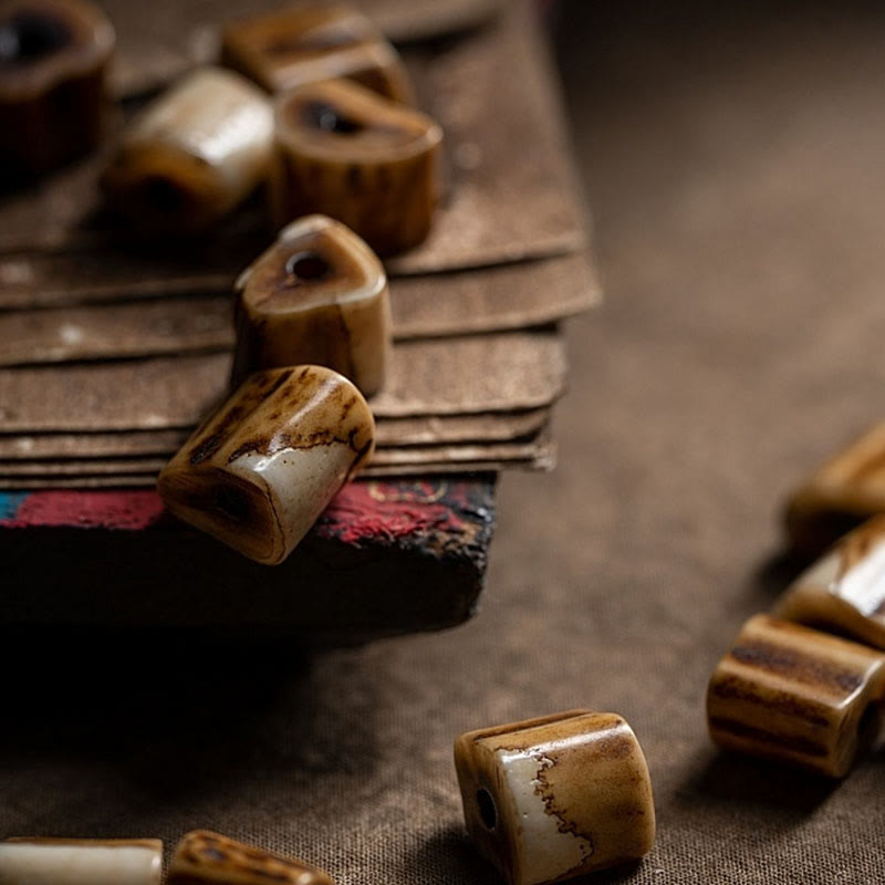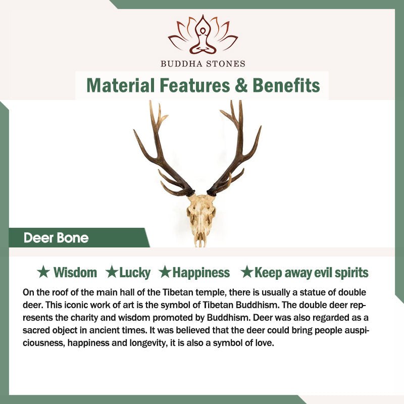 La pulsera de hueso de ciervo con calavera tallada presenta calaveras de hueso de yak intrincadamente talladas, que simbolizan la sabiduría y la impermanencia . Hecha con hueso natural de ciervo y yak, ofrece conexión espiritual y comprensión . La pulsera está adornada con una borla que le aporta un toque de movimiento y fluidez. Esta pieza promueve la claridad interior, el equilibrio y la conexión con el significado más profundo de la vida , convirtiéndola en un poderoso accesorio espiritual. 💕