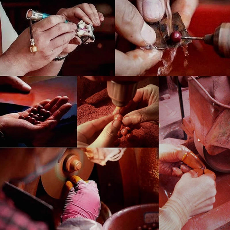 En la cultura budista, el cinabrio se utiliza a menudo para hacer cuentas de oración y rosarios. Se utiliza al cantar las escrituras budistas. Puede calmar la mente, aquietarla, concentrarla y aumentar la sabiduría. Es una mascota esencial para quienes veneran a Buda.