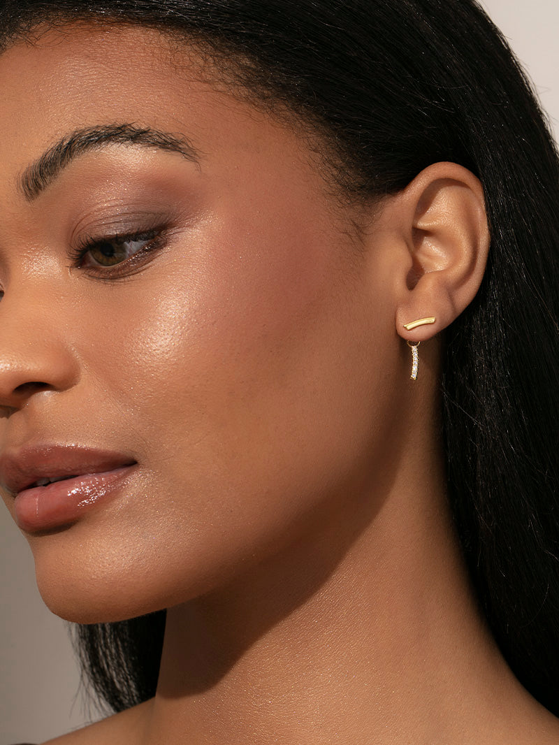 Querías diseños de aretes más exclusivos, así que te los ofrecemos. Nuestro Ear Jacket Dimensional presenta una sencilla barra de oro al frente y un toque de brillo que se asoma detrás de la oreja. Agrega estos aretes de oro a tu colección y recibe todos los cumplidos.