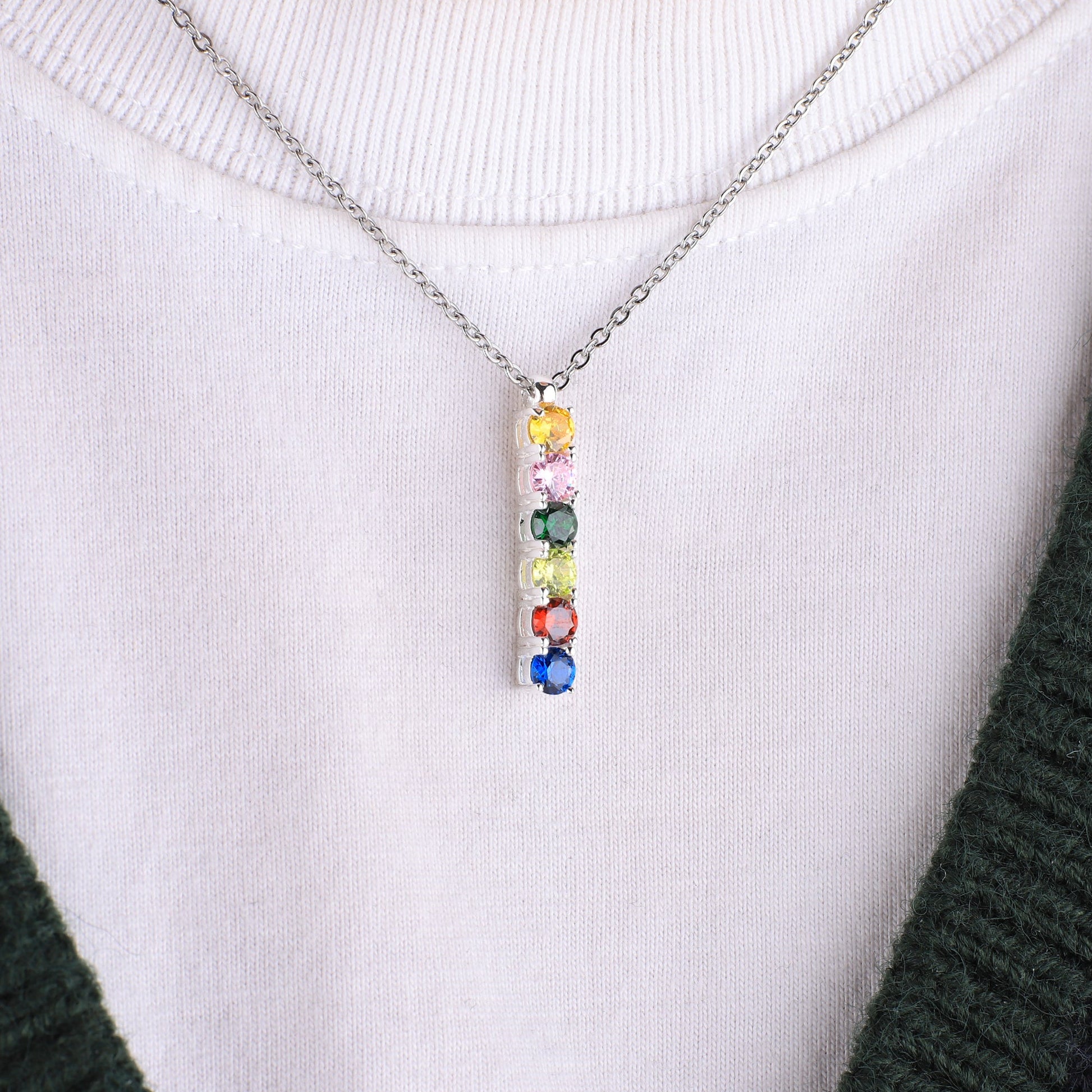 ¡Personalízame! Personaliza tu collar de piedras de nacimiento familiares con hasta seis piedras de nacimiento.