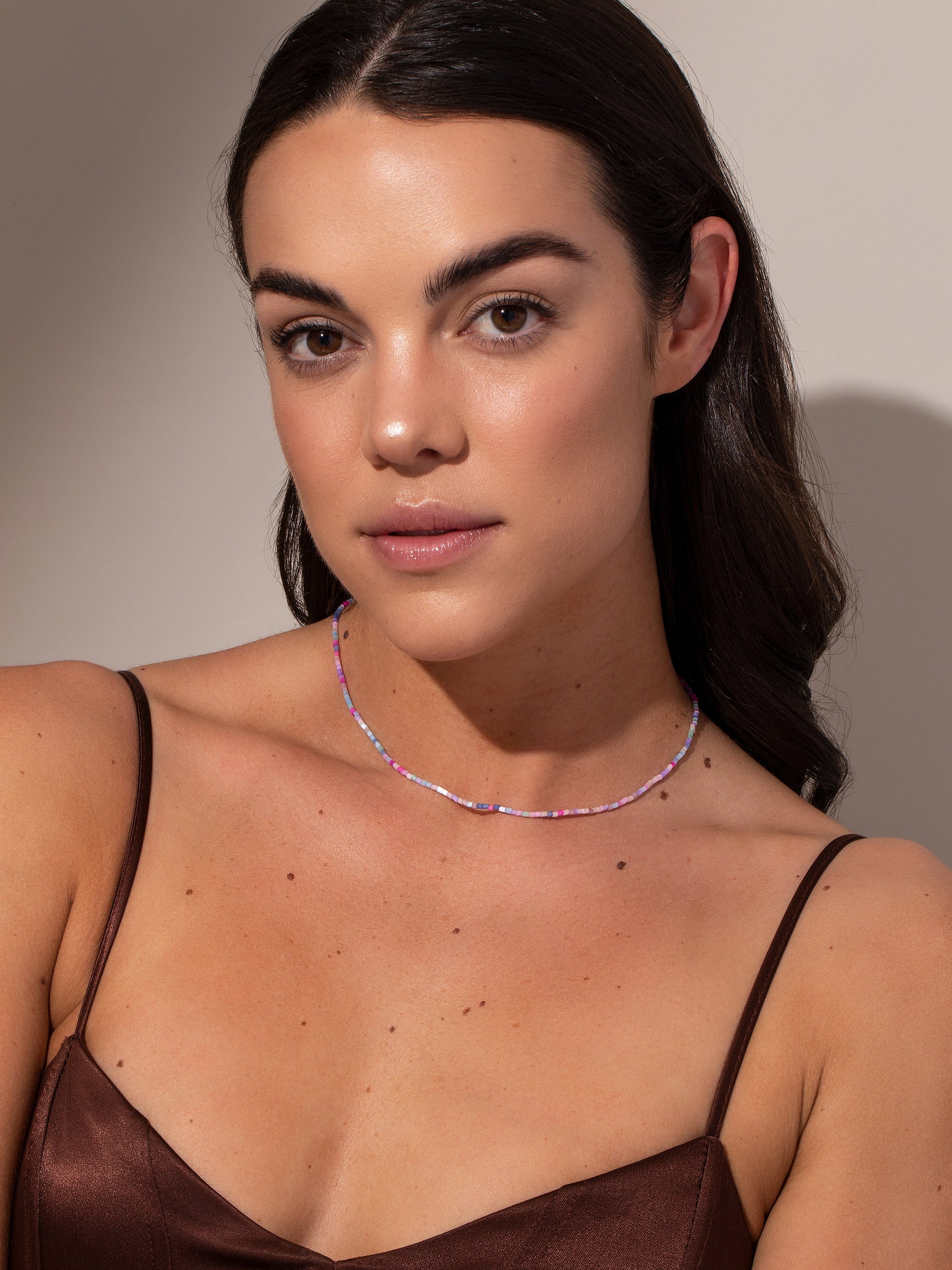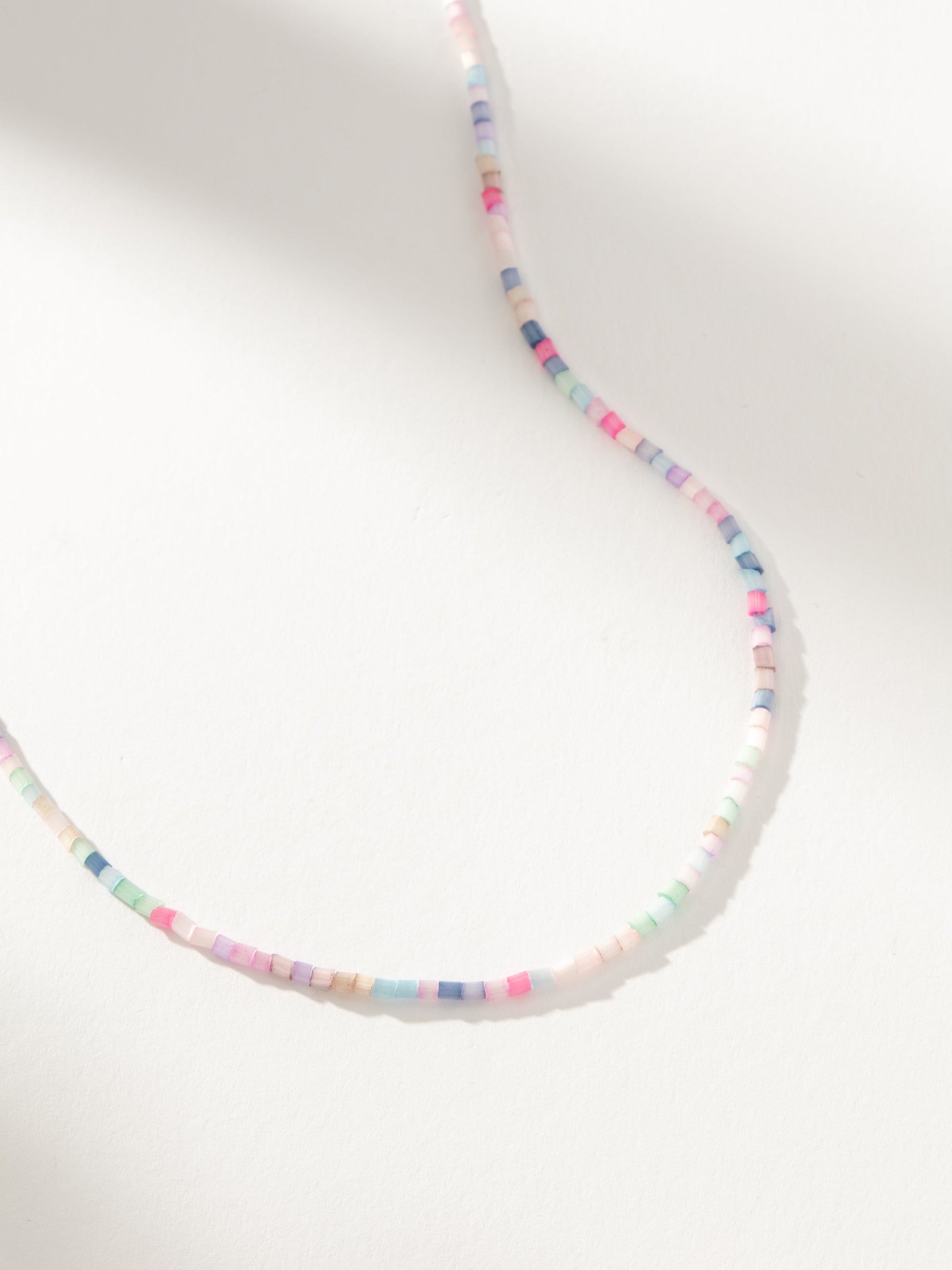 Este collar de cuentas en tonos fríos le da un toque dulce a tu día a día. Para completar tu colección, combínalo con nuestro collar " Don't Call Me Little" , el collar "Ready to Mingle 2.0" o cualquiera de tus collares dorados favoritos . ¿Quieres más joyas de cuentas? Explora nuestra colección completa .