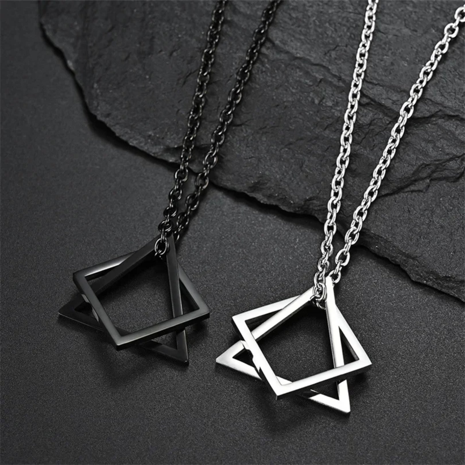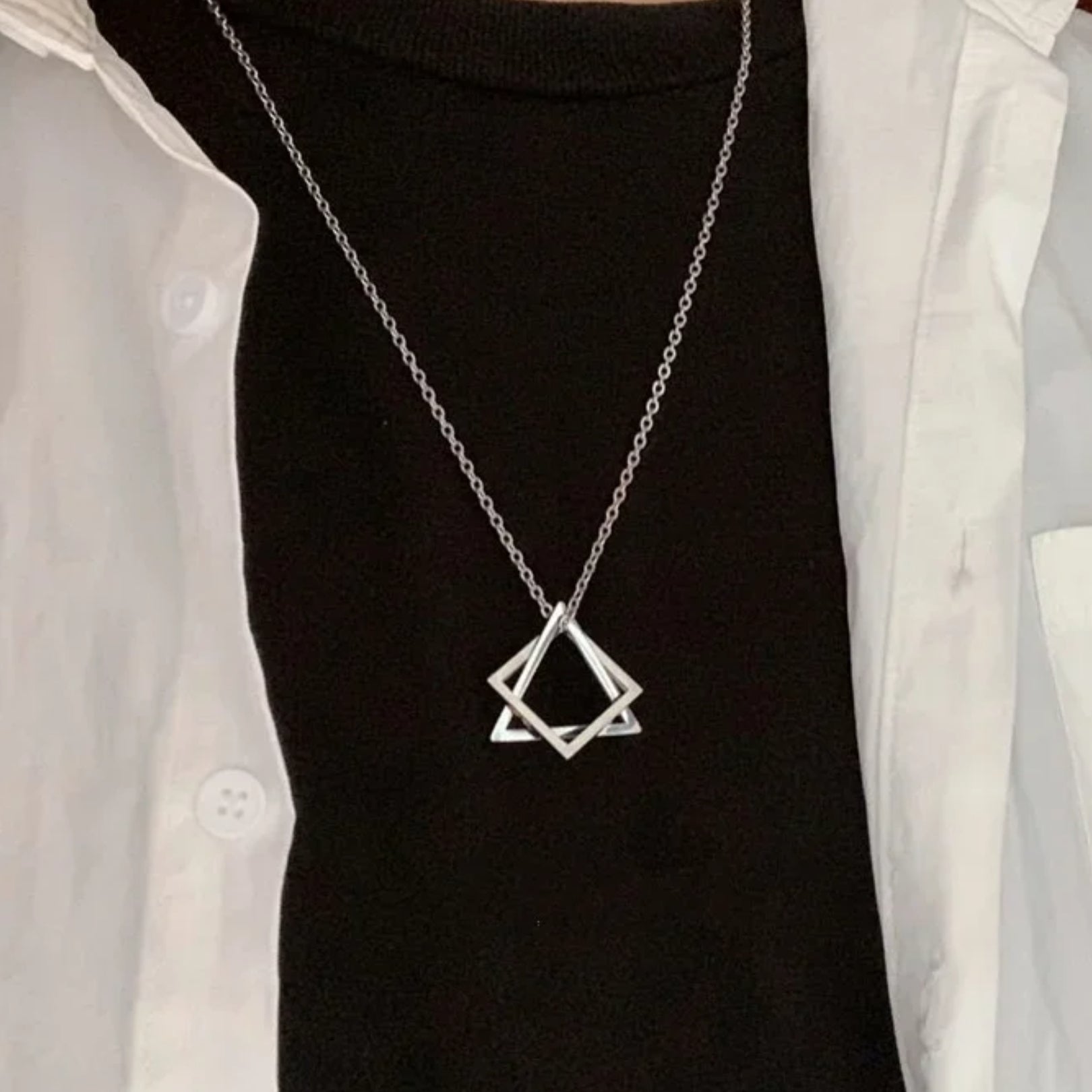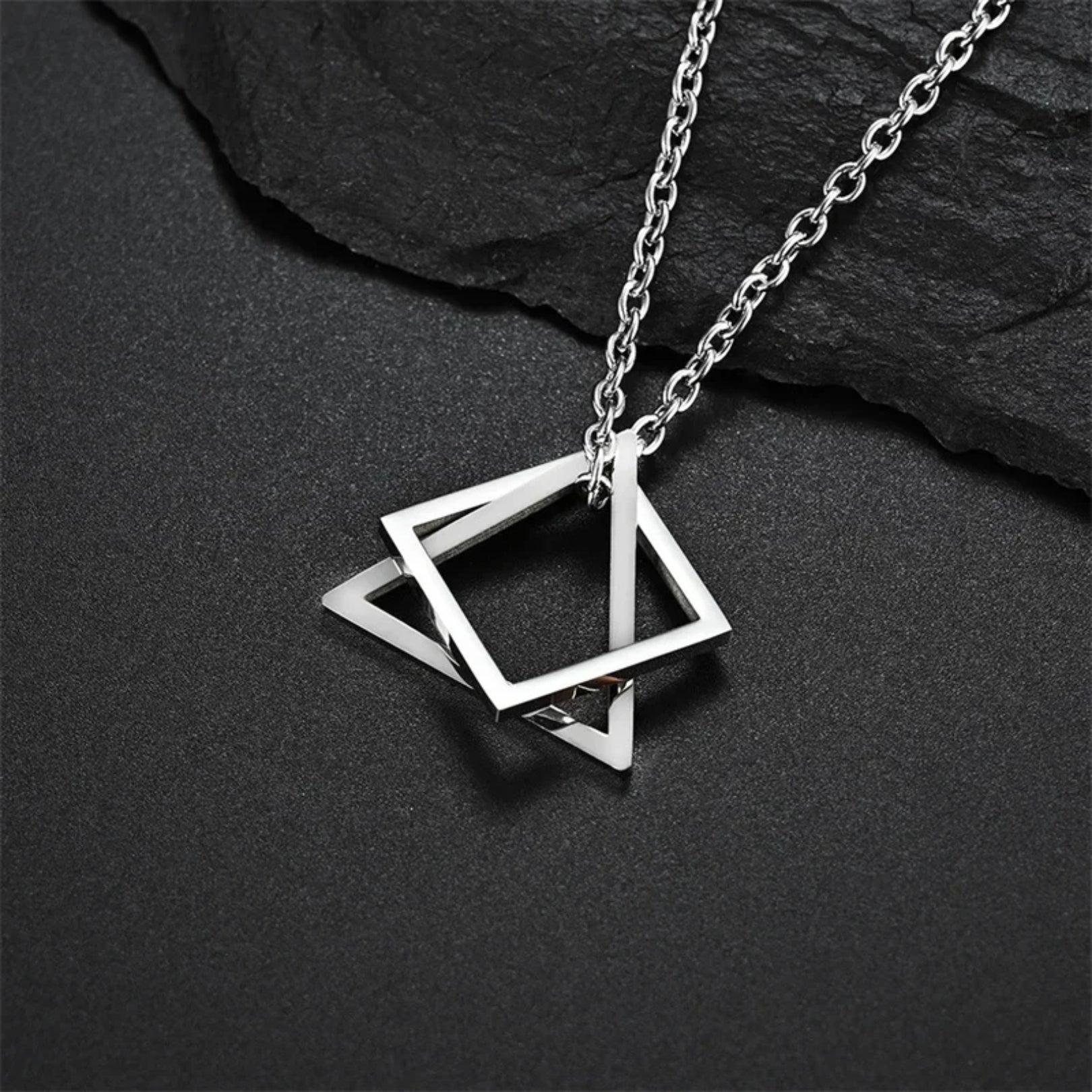 Collar con colgante geométrico de triángulo y cuadrado: Elegancia artística en cada ángulo