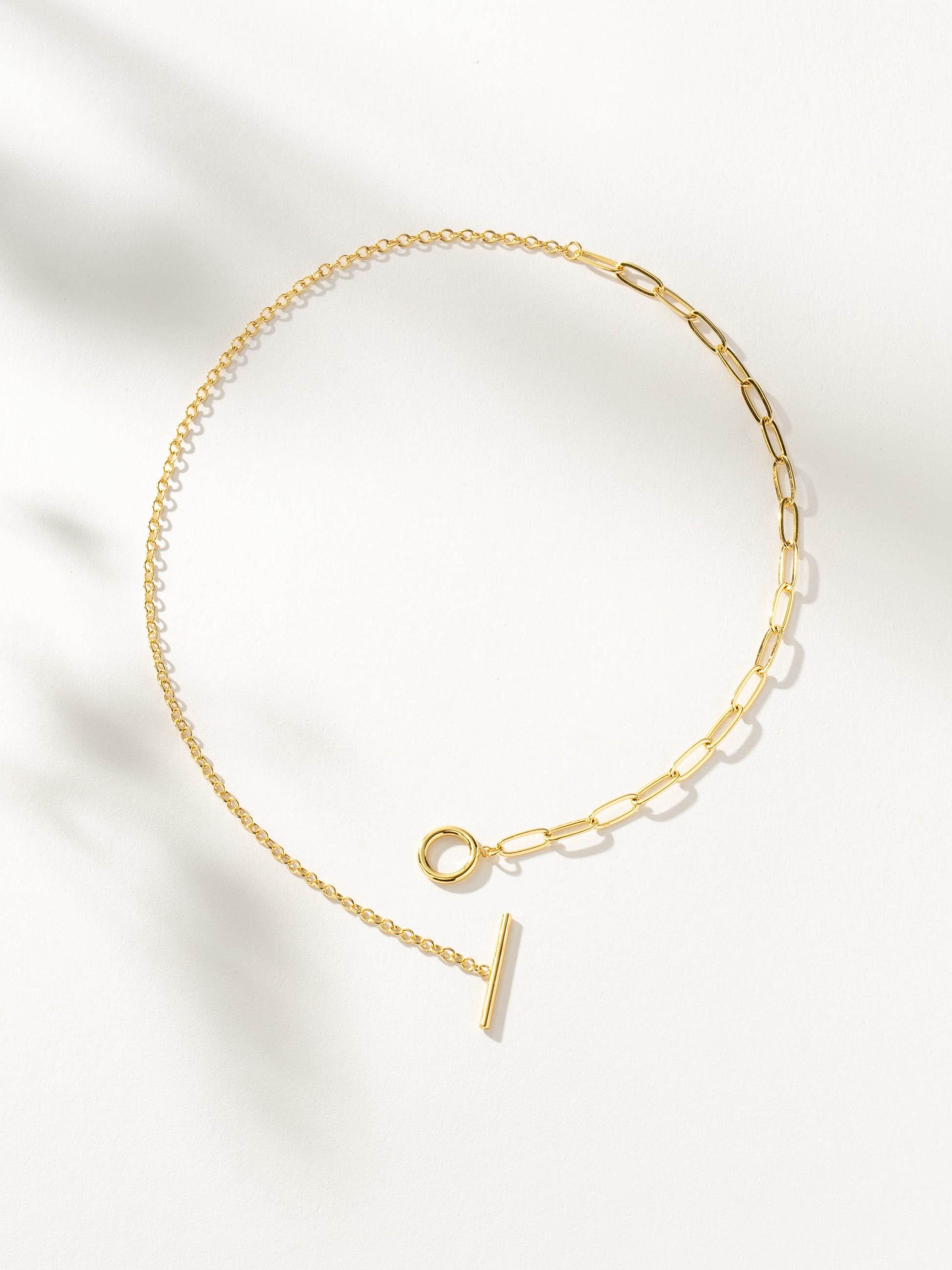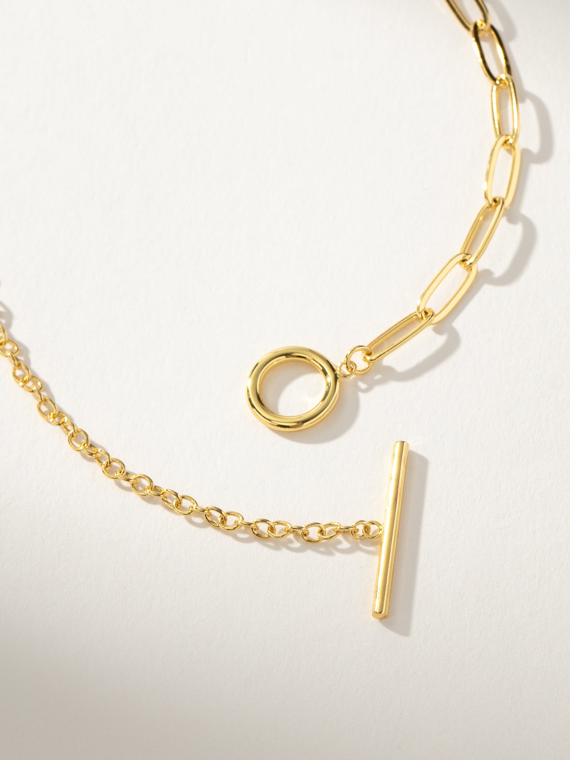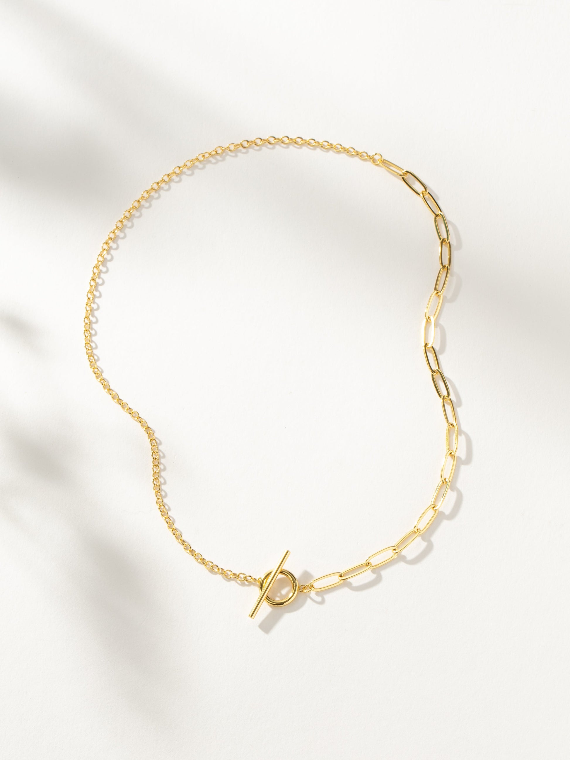 No te dejes engañar por el nombre, sabemos exactamente lo que sentimos por el Collar Emociones Mixtas. Unimos dos estilos clásicos de collares de cadena, los unimos al centro con un cierre de palanca y creamos un collar de cadena mixta del que nos encanta. Combínalo con un collar de cadena y un collar de lazo para completar tu look.