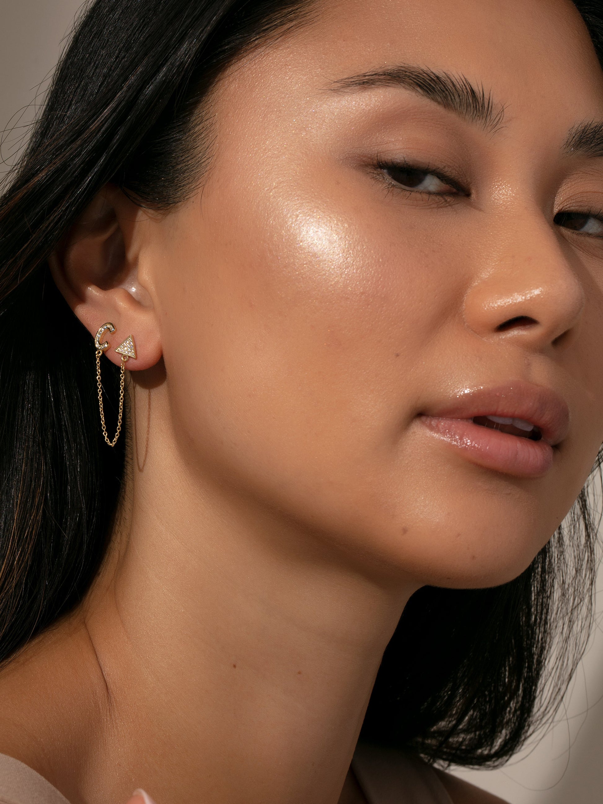 Nuestro pendiente trepador de orejas inicial aporta un toque personalizado y una cadena a tu look.
