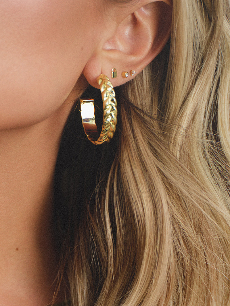 Tu conjunto de pendientes lucirá impecable con estos pendientes. Nuestros pendientes de botón con candado son el estilo perfecto para el día a día, ideales para combinar con tus prendas esenciales. Para un look que nuestros estilistas adoran, combina estos sencillos pendientes con nuestros pendientes de aro Vine . Para un look completo, combínalos con nuestro collar Eternity Lock .