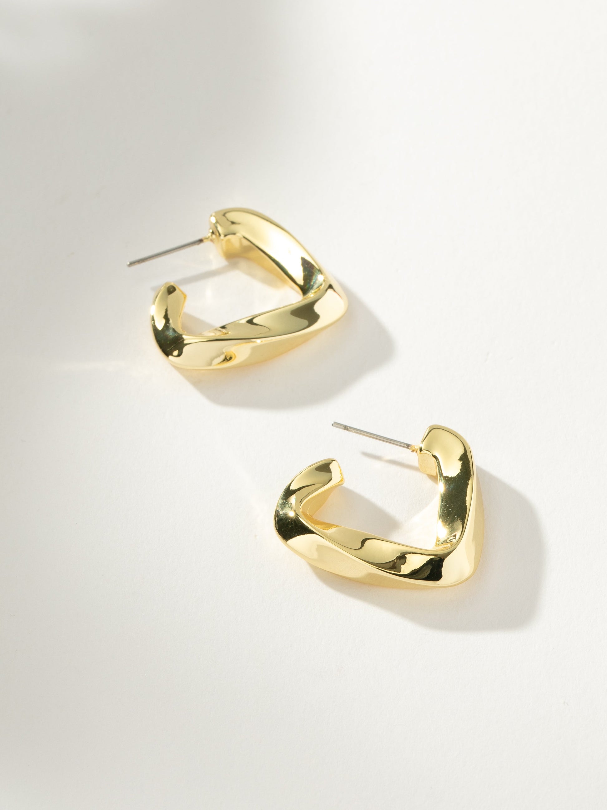 Nuestros aros Not Your Baby son únicos y nunca antes vistos. Estos aros únicos presentan un diseño triangular con un toque especial. Si quieres que estos pendientes llamativos sean el centro de atención, combínalos con nuestros coloridos pendientes de botón con flores .