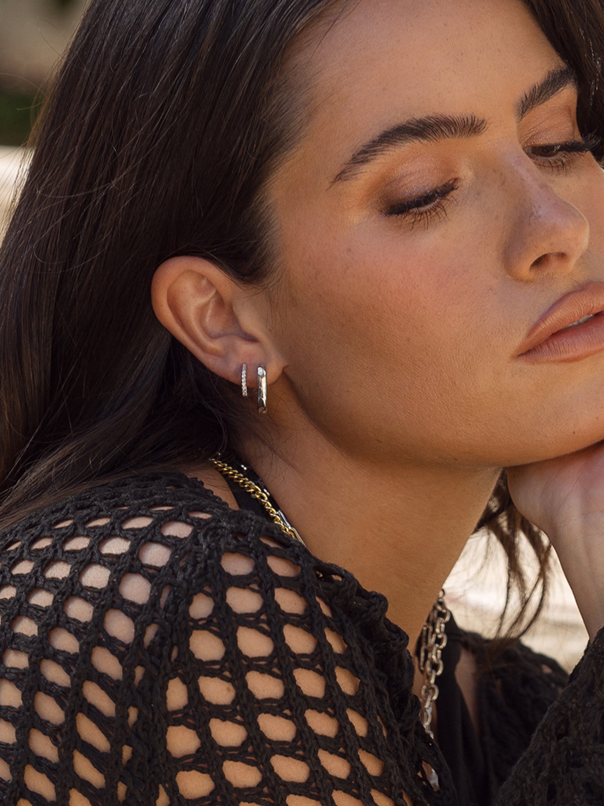 Dale un respiro a tus aros huggie clásicos con nuestros Aretes Huggie Ovalados. Disponibles en oro y plata, estos mini aros ovalados son el nuevo básico que tu colección de aretes necesita. Para un look que nuestros estilistas adoran, combina estos aretes ovalados con nuestros Aretes Huggie Runway .