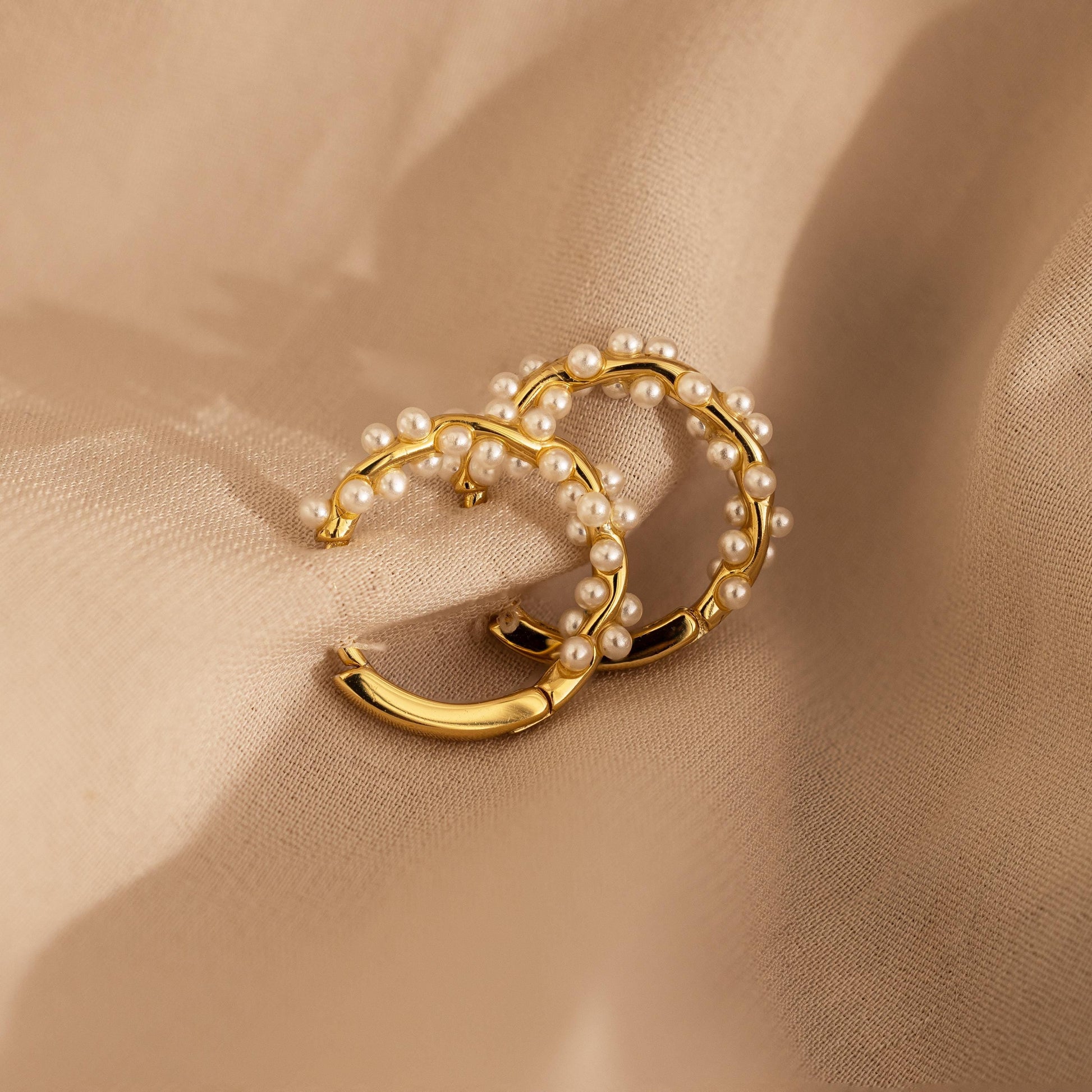 - Pendientes de aro Huggie de 2 mm de grosor con perlas de 1,5 mm | Calibre: 19