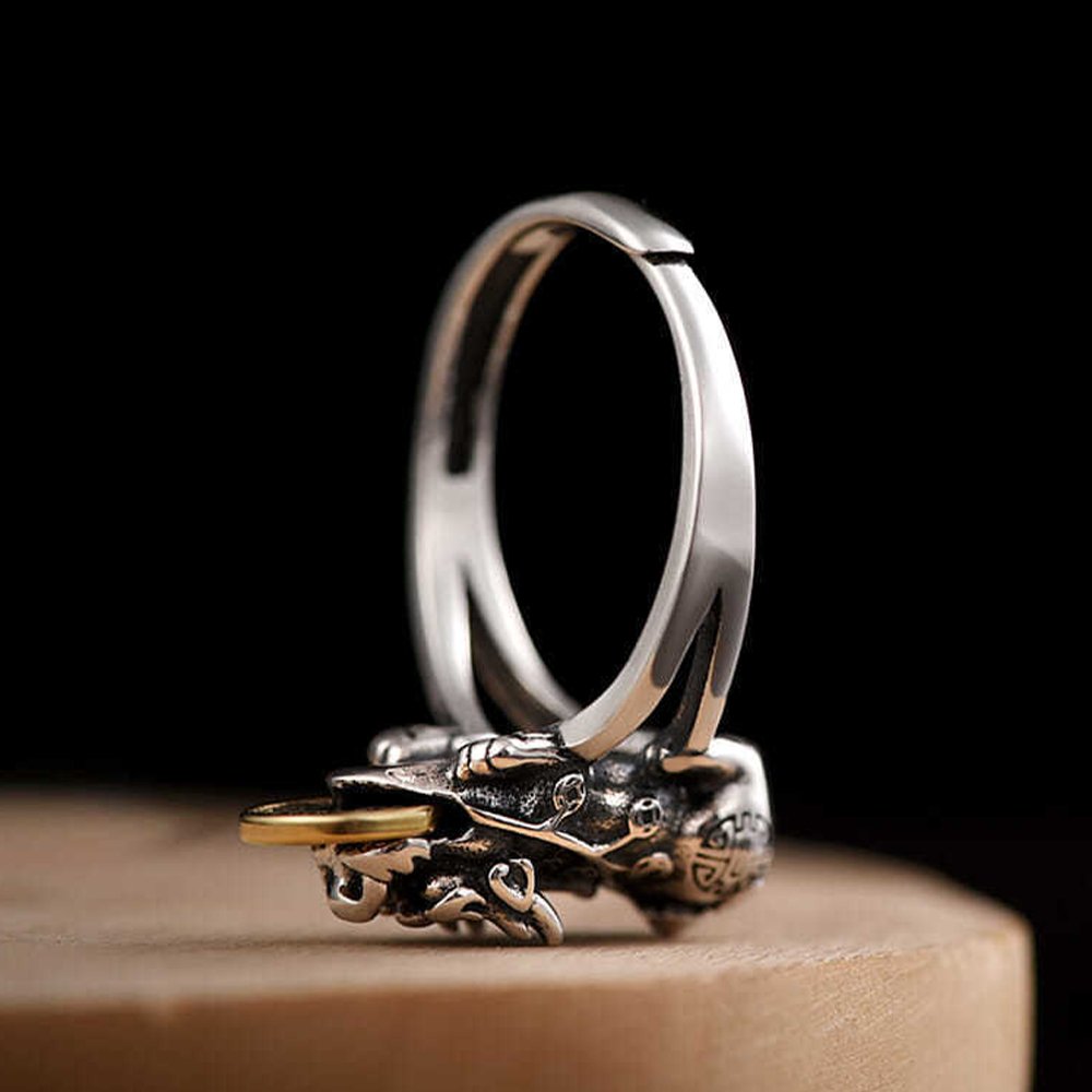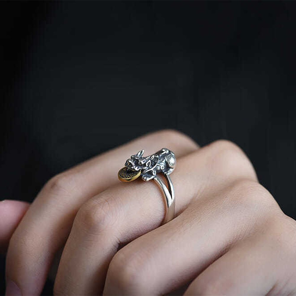 Pixiu Eating A Lucky Coin Fortune Ring
