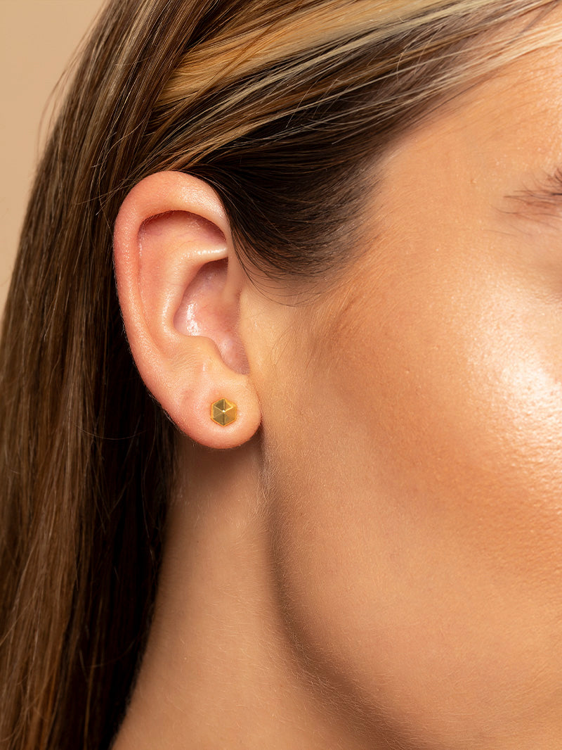 Los pendientes de botón pueden causar sensación, y nuestros pendientes de botón piramidales son la prueba. Puedes usarlos solos o combinados con tus pendientes de botón favoritos para un look atrevido. ¿Mencionamos que estos pendientes de botón dorados también te darán un sutil look geométrico? ¡Lo tienen todo!