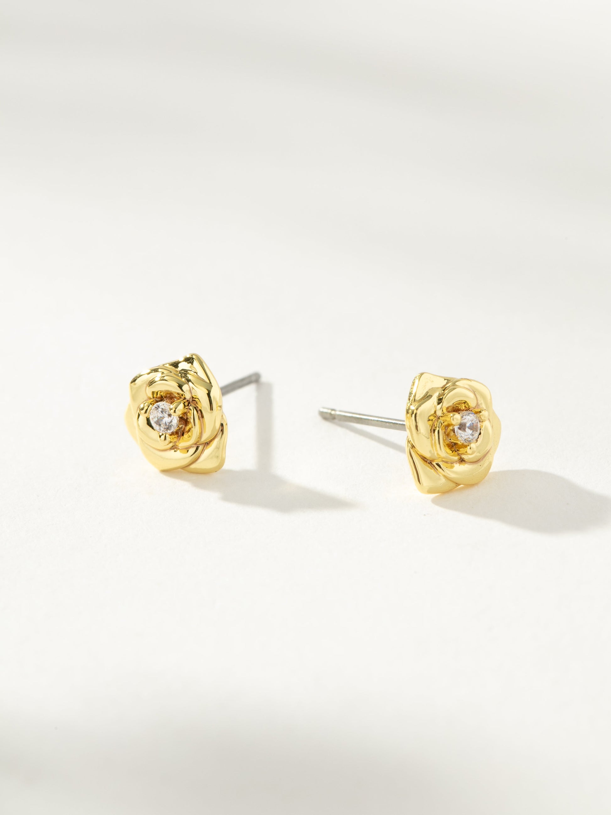 Nuestros aretes de rosa son pequeños, pero sin duda destacarán con el detalle de pétalos de rosa y el broche central. Para un look completo, combínalos con otros estilos de joyería floral de nuestra colección In The Garden .