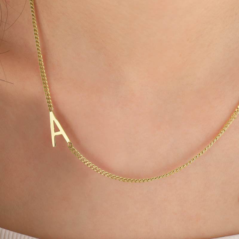 Este clásico atemporal nunca pasa de moda. El collar con inicial delgada presenta una delicada fuente en bloque para un look sutil y minimalista. Perfecto para el día a día o para ocasiones especiales.