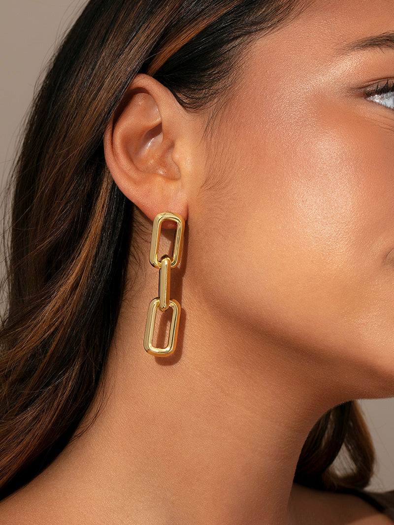 Nuestros aretes de triple eslabón transforman tu obsesión por las cadenas, pasando de simples collares a aretes llamativos. Combínalos con todas tus demás joyas de cadena para un look completo.