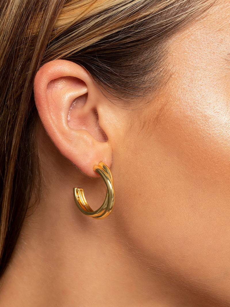 Algunas cosas siempre son mejores con un toque diferente, ¡como estos aros retorcidos! Con dos aros dorados entrelazados, son unas de nuestras piezas favoritas.