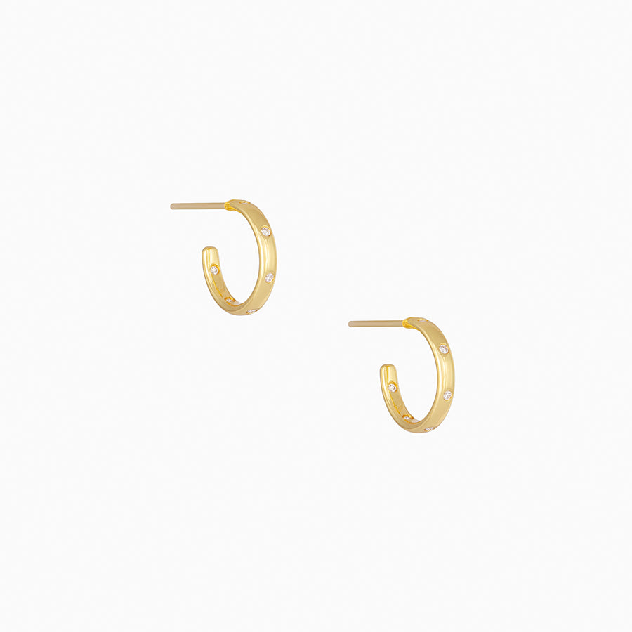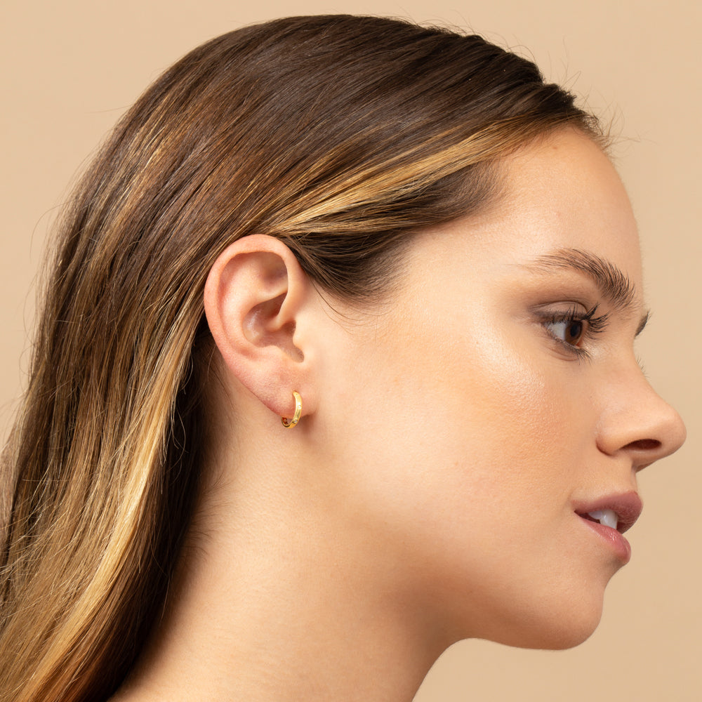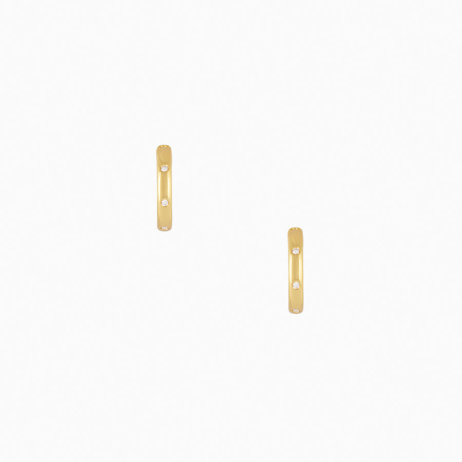 A quiet luxury, our Always Vermeil Huggies are simple hoops crafted with 18k gold over sterling silver and lined with 6 real, slightly included round-cut diamonds.
